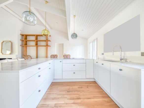 La cuisine américaine est parfaitement équipée et comporte un espace dînatoire.