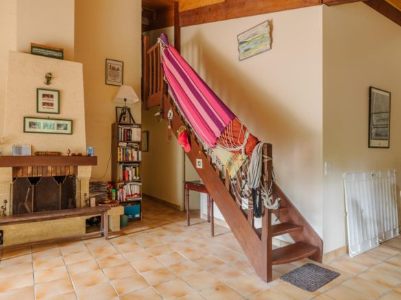 Cette maison de pays typique à charpente apparente dispose de volumes remarquables