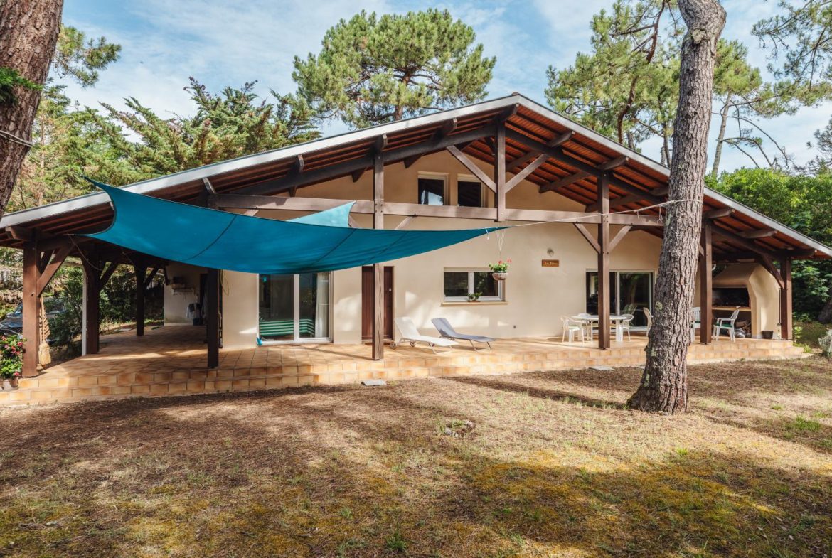 A la pointe du Cap Ferret, dans le secteur très prisé des 44 hectares, cette confortable villa familiale se situe au cœur d’un vaste terrain arboré de plus de 1100 m².