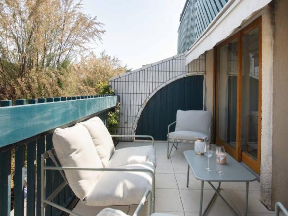 Une large terrasse filante, également meublée, offre une appréciable et agréable ouverture vers l’extérieur.