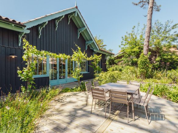 Dans le village du Cap Ferret, à distance à pied du marché et des commerces, cette superbe villa en bois, offre piscine et cabane d’invités.