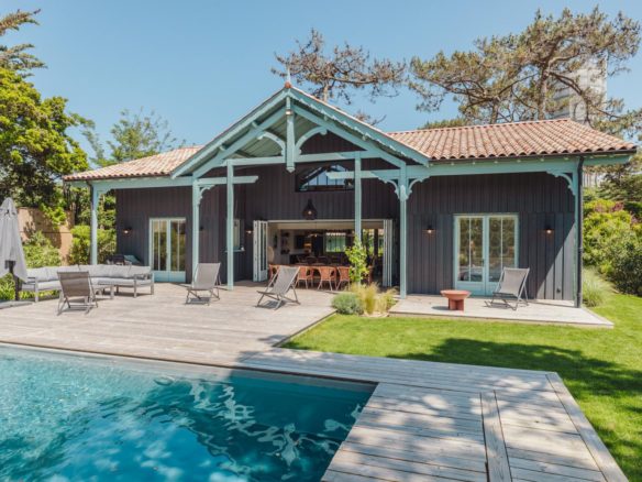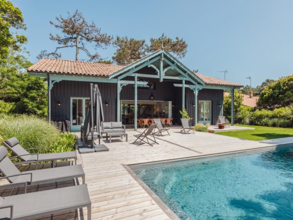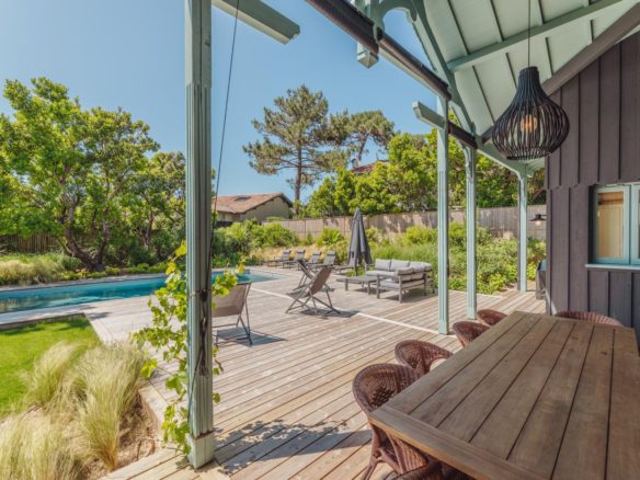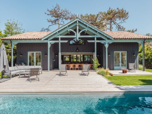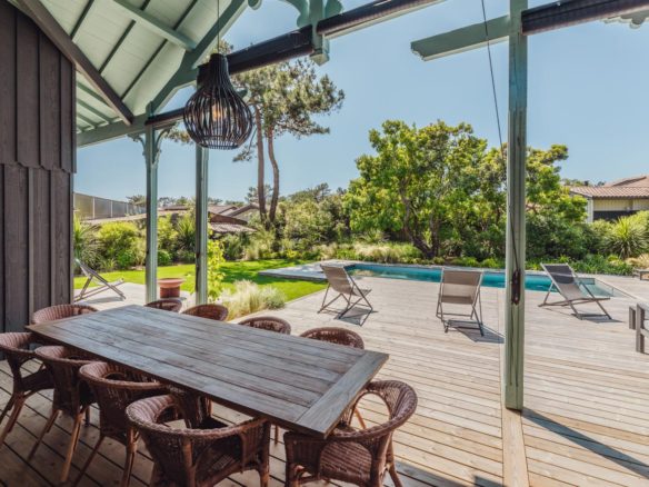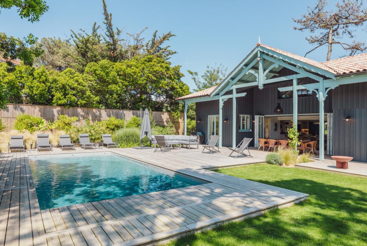 Au Cap Ferret, cette superbe villa neuve avec piscine, d’une grande capacité d’accueil est proposée en location saisonnière.