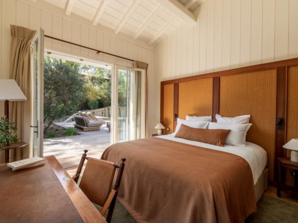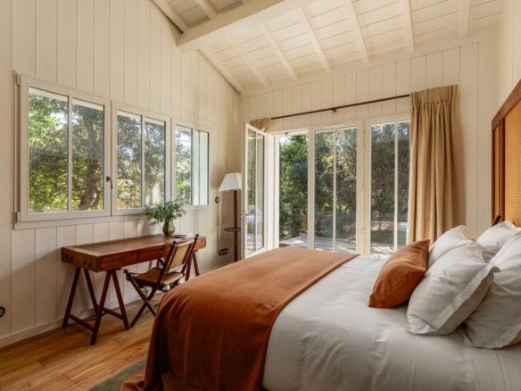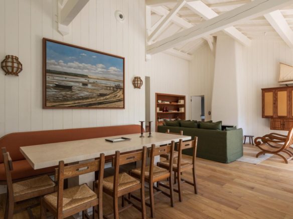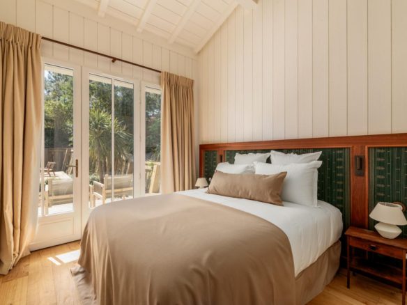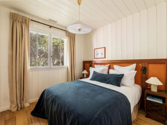 A l’abri des pins, dotée d’équipements et de services dignes des plus beaux hôtels, la maison de plain-pied abrite cinq magnifiques chambres, toutes en suite, ainsi qu’un vaste et lumineux salon-salle à manger. Ce superbe espace de vie baigné de lumière, offrira de superbes moments à table ou réceptif.