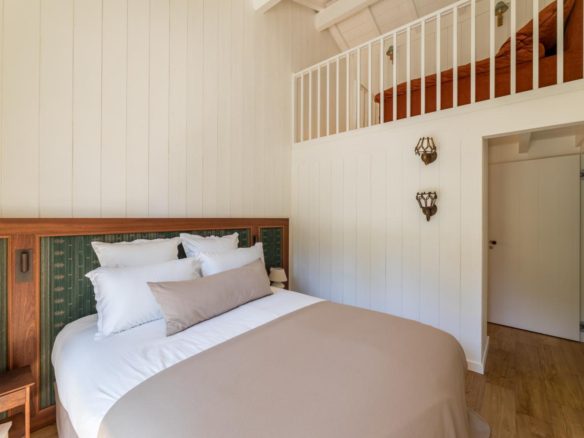 - Une chambre avec lit en 160 x 200 cm + mezzanine avec lit en 140 x 190 cm, salle d’eau avec douche à l’italienne et WC,