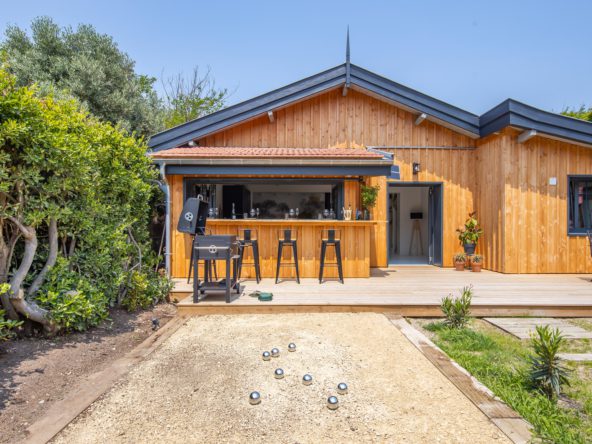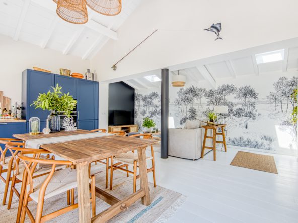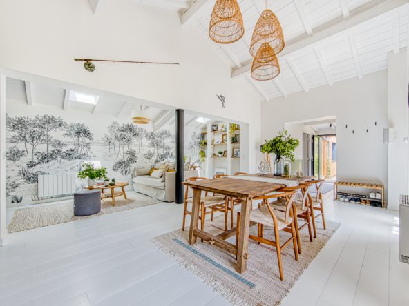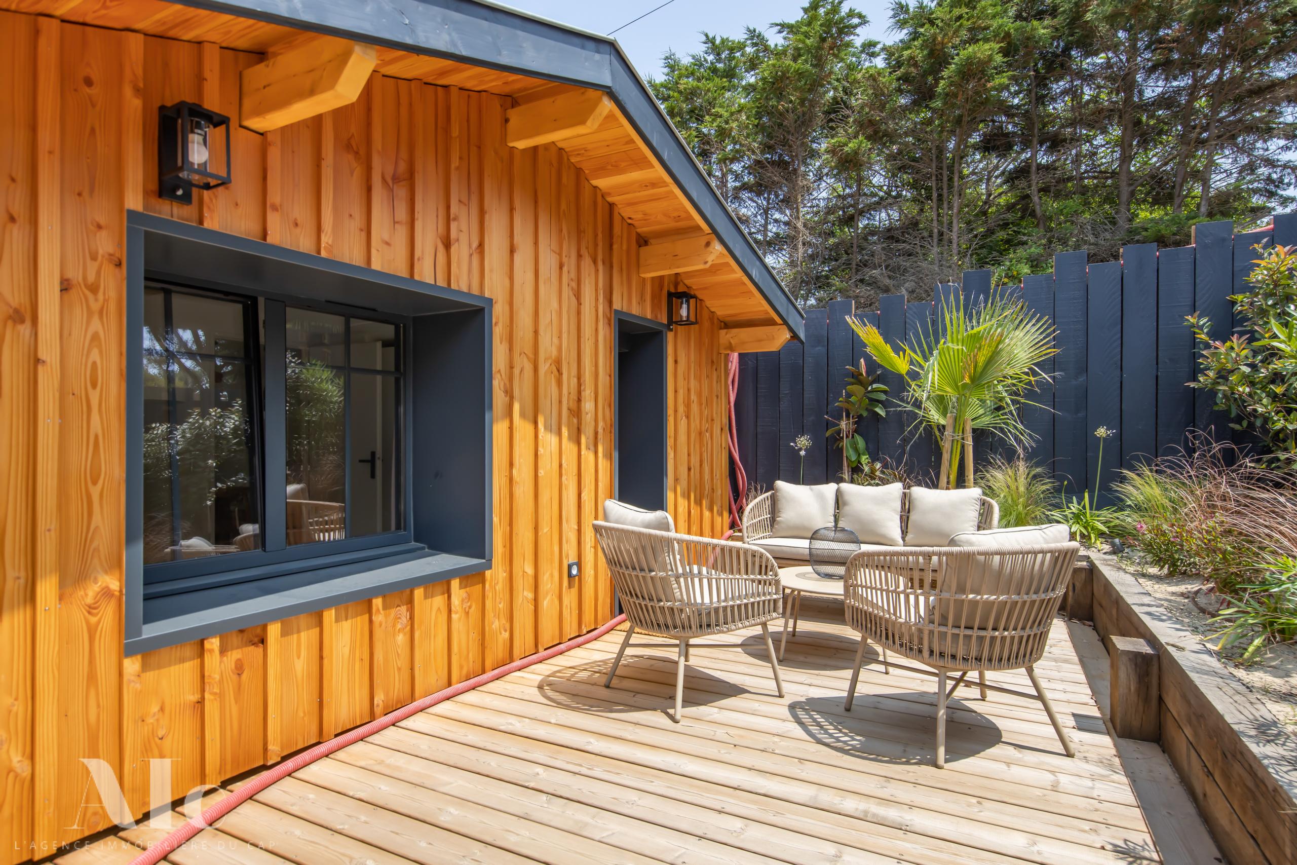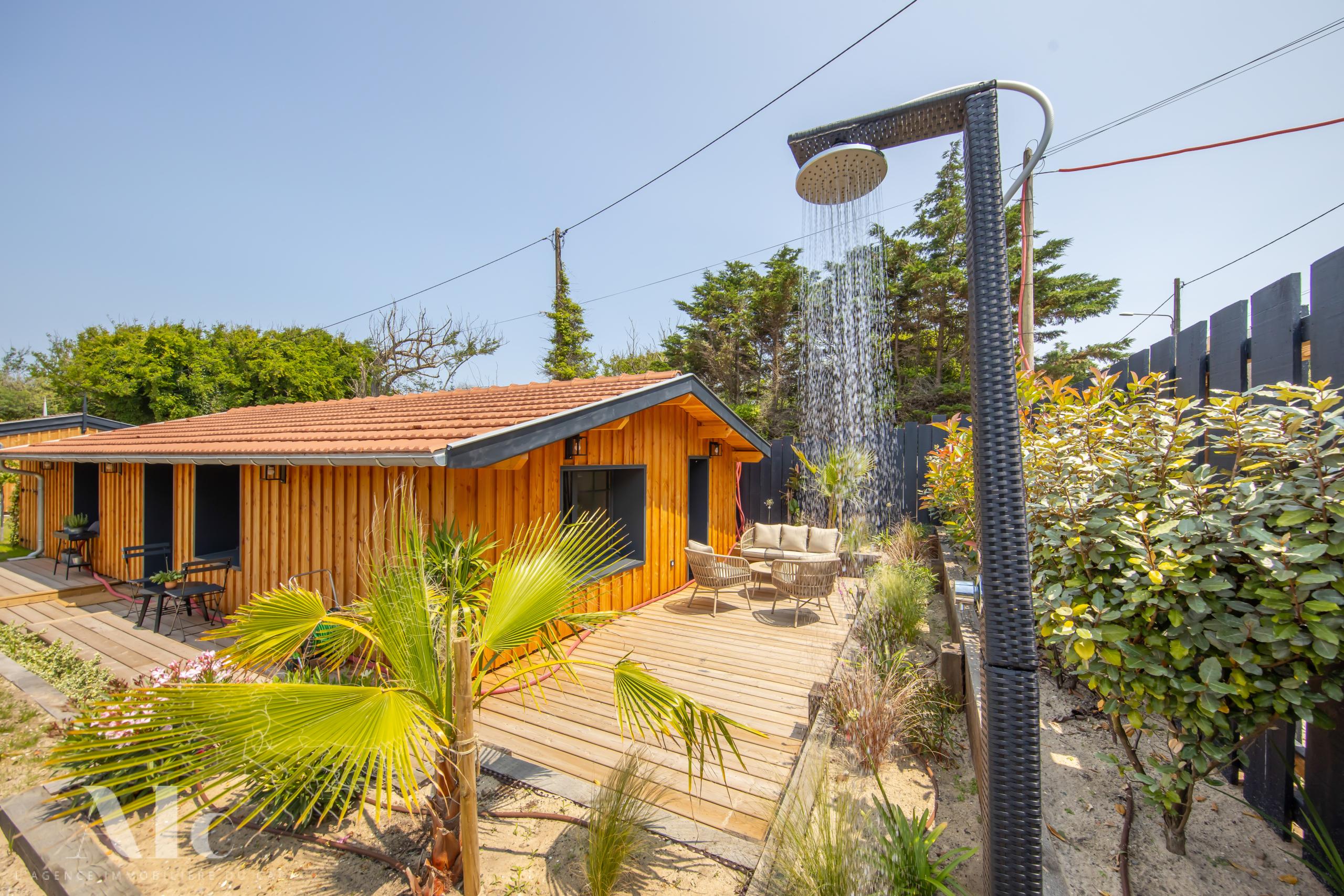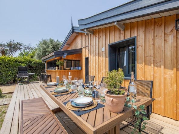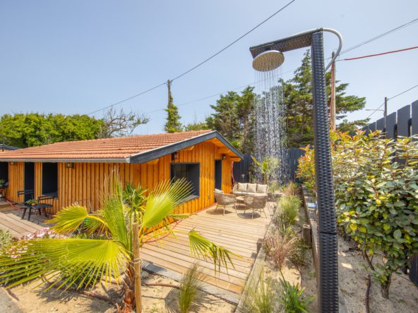 A deux pas des plages de l’océan à la pointe du Cap Ferret, cette charmante villa dans l’esprit cabane se situe dans le quartier du phare.