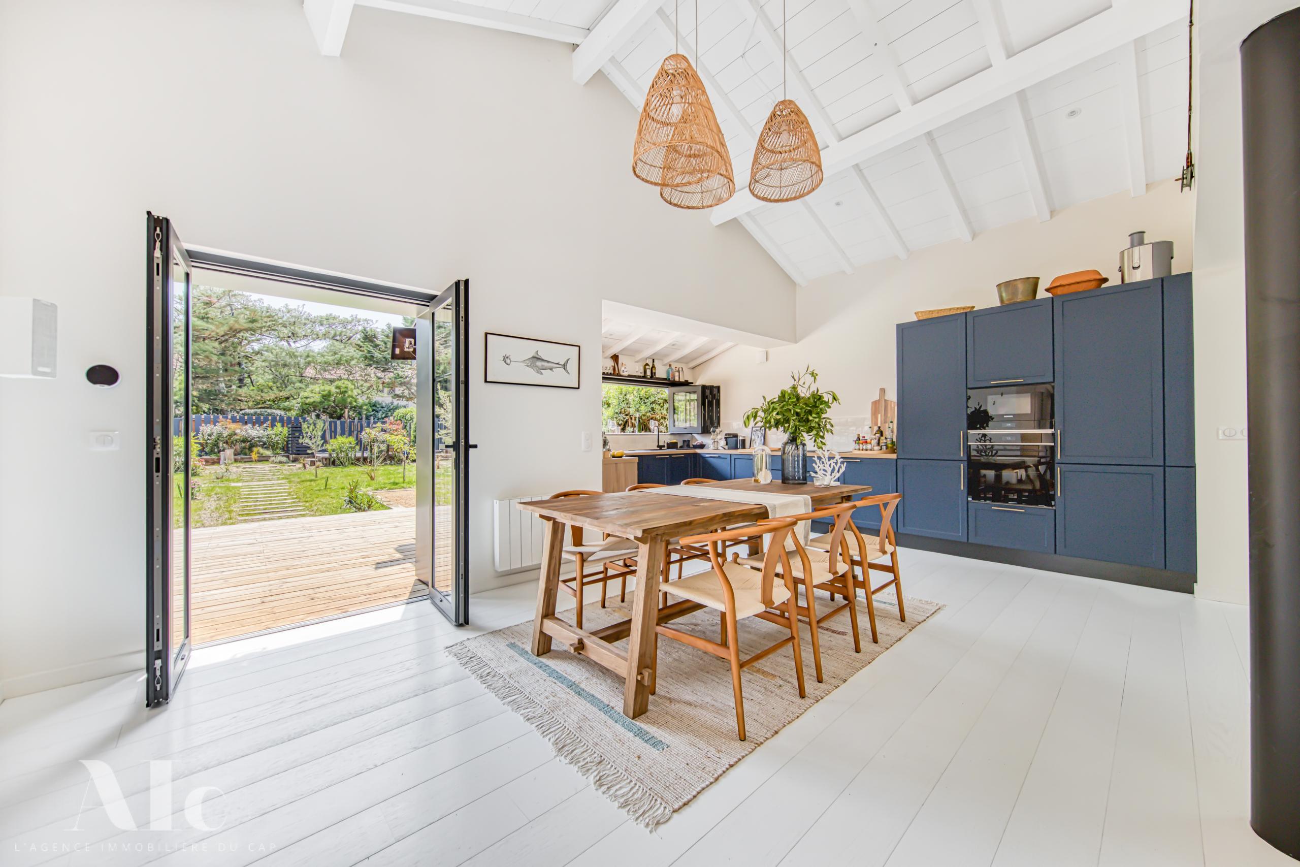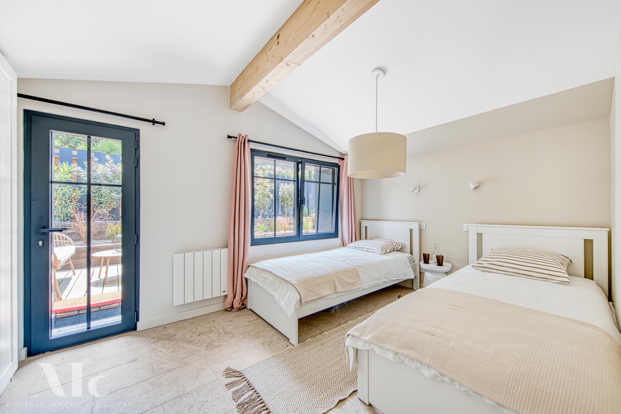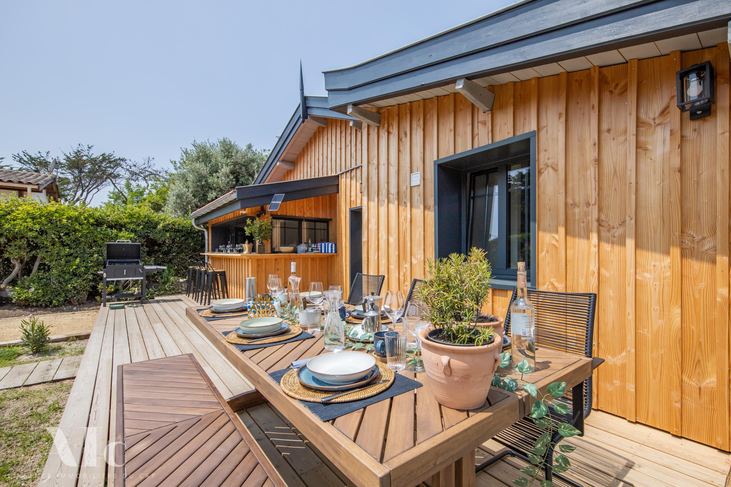 Dans un quartier protégé et au calme, la situation est idéale, à quelques minutes à pieds de l’océan. A proximité à vélo, les plages du bassin, le marché estival du Cap, et les meilleurs adresses de dégustations et de restauration.