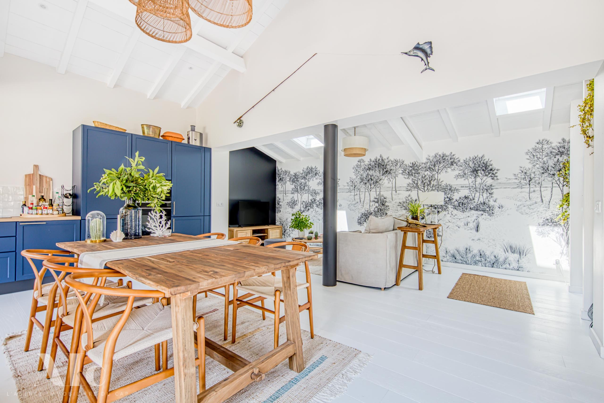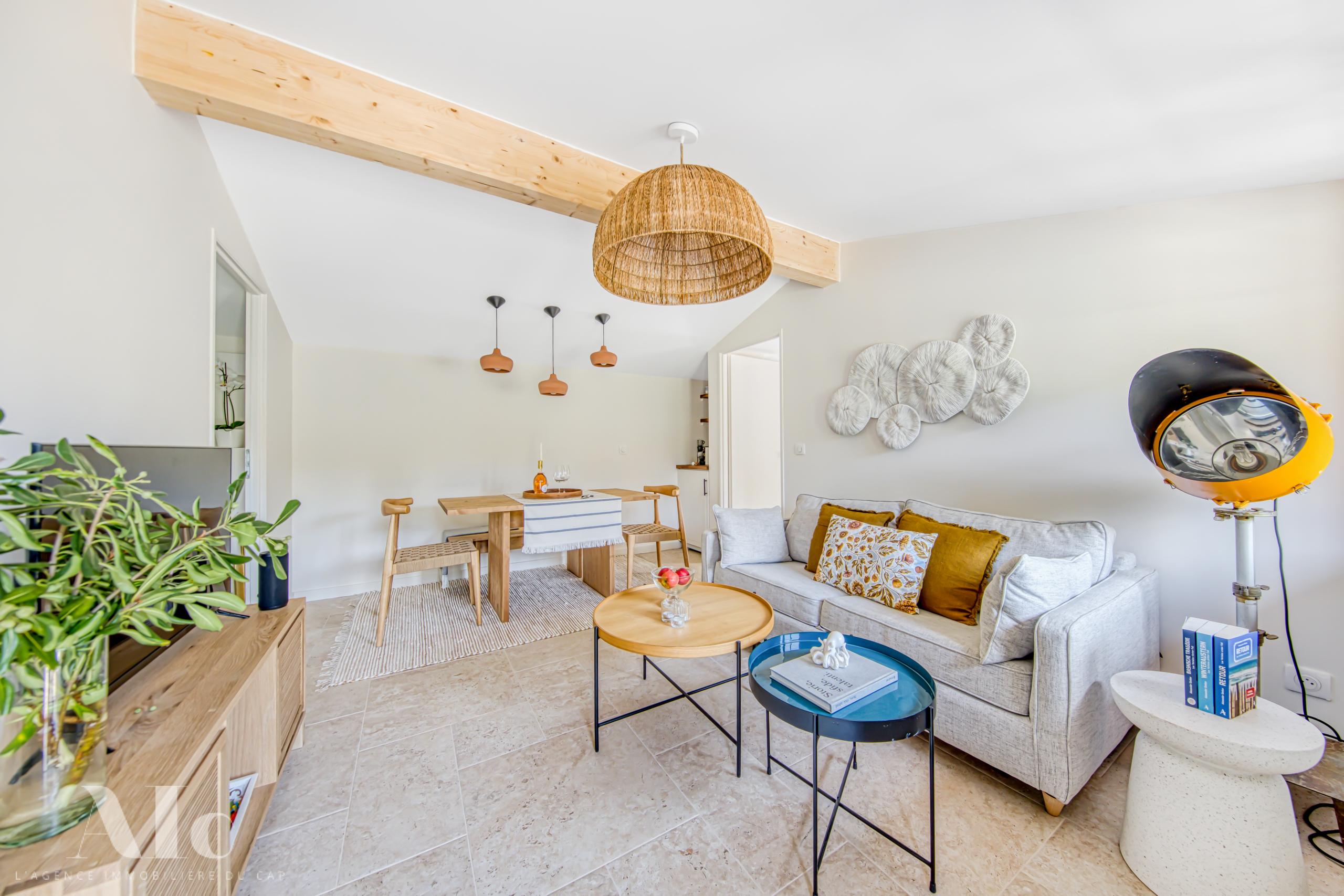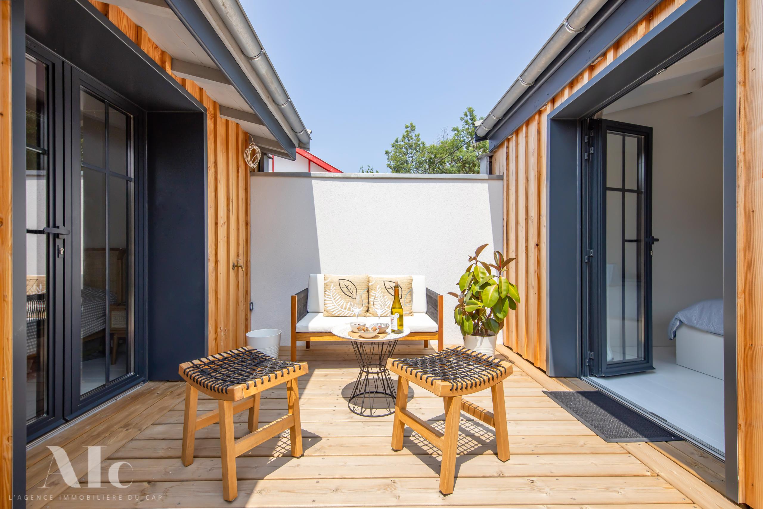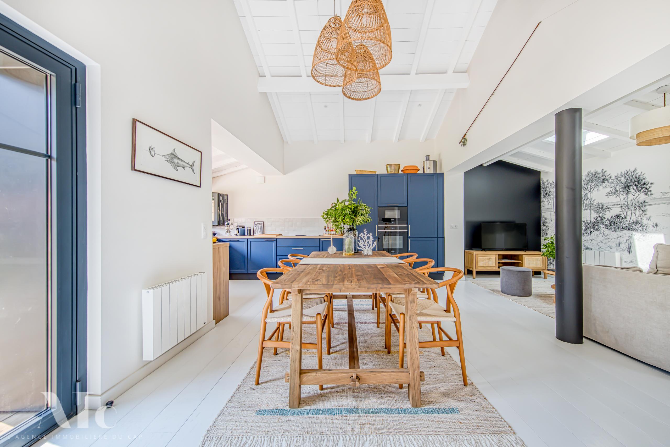 Dans un quartier protégé et au calme, la situation est idéale, à quelques minutes à pieds de l’océan. A proximité à vélo, les plages du bassin, le marché estival du Cap, et les meilleurs adresses de dégustations et de restauration.