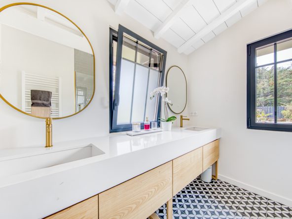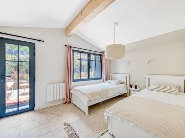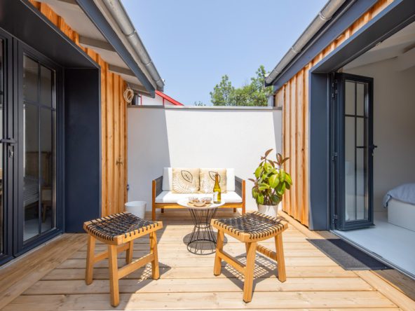 Avec un total de quatre vastes chambres, cette villa peut recevoir en tout confort jusque 8 personnes. En extérieur, une terrasse bois accueille salon et espace de repas. Un vrai havre de repos pour des vacances de rêve entre bassin et océan