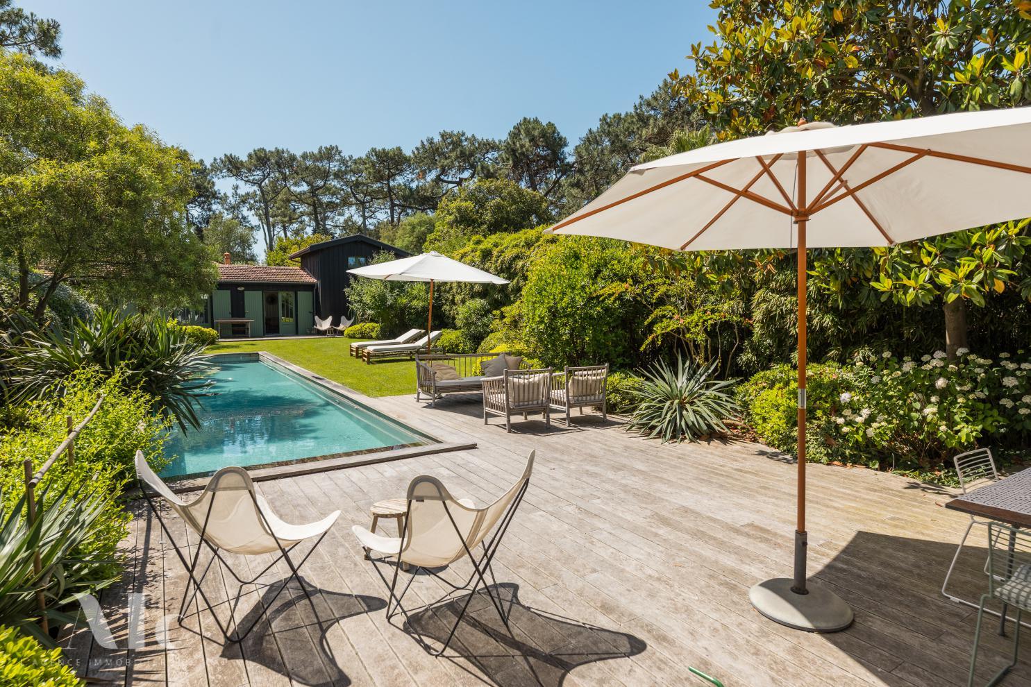 Dans un quartier protégé et au calme, la situation est idéale, à quelques pas de la plage de l’Horizon. Les plages du bassin sont également accessibles à quelques minutes à bicyclette. Dégustations ostréicoles, marché couvert du Ferret, meilleures adresses de la Pointe à proximité.