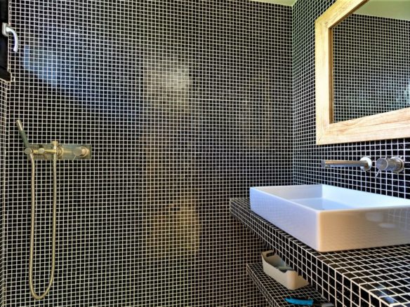 Les chambres, toutes équipées de leur salle d’eau ouvrent vers une terrasse intimiste entre la villa principale et le cabanon d’invité.