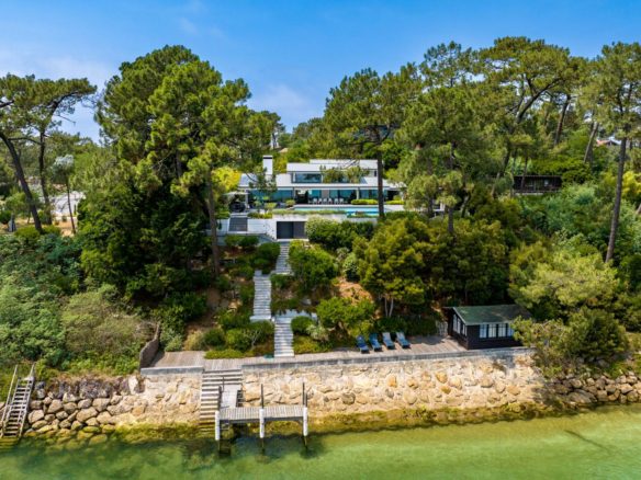 Au Cap Ferret cette splendide villa vue bassin les pieds dans l’eau est en location saisonnière juillet et août