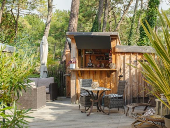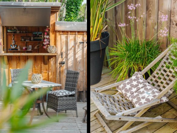 - Sous la végétation, des terrasses aménagées et confortablement meublées entourent la maison,