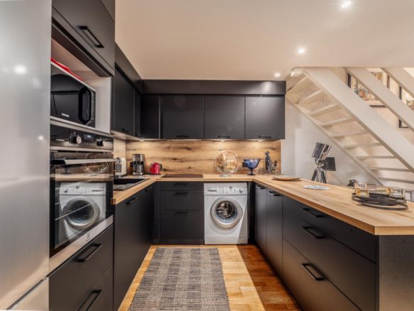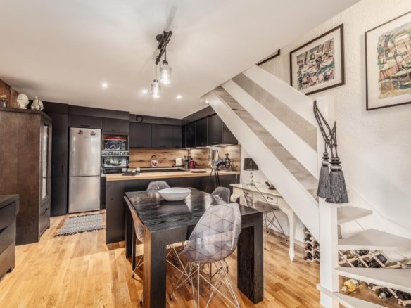 En rez-de-jardin, un espace à vivre distribue en enfilade une cuisine dînatoire parfaitement aménagée, un confortable salon, ainsi qu’une salle à manger d’été en extérieur.
