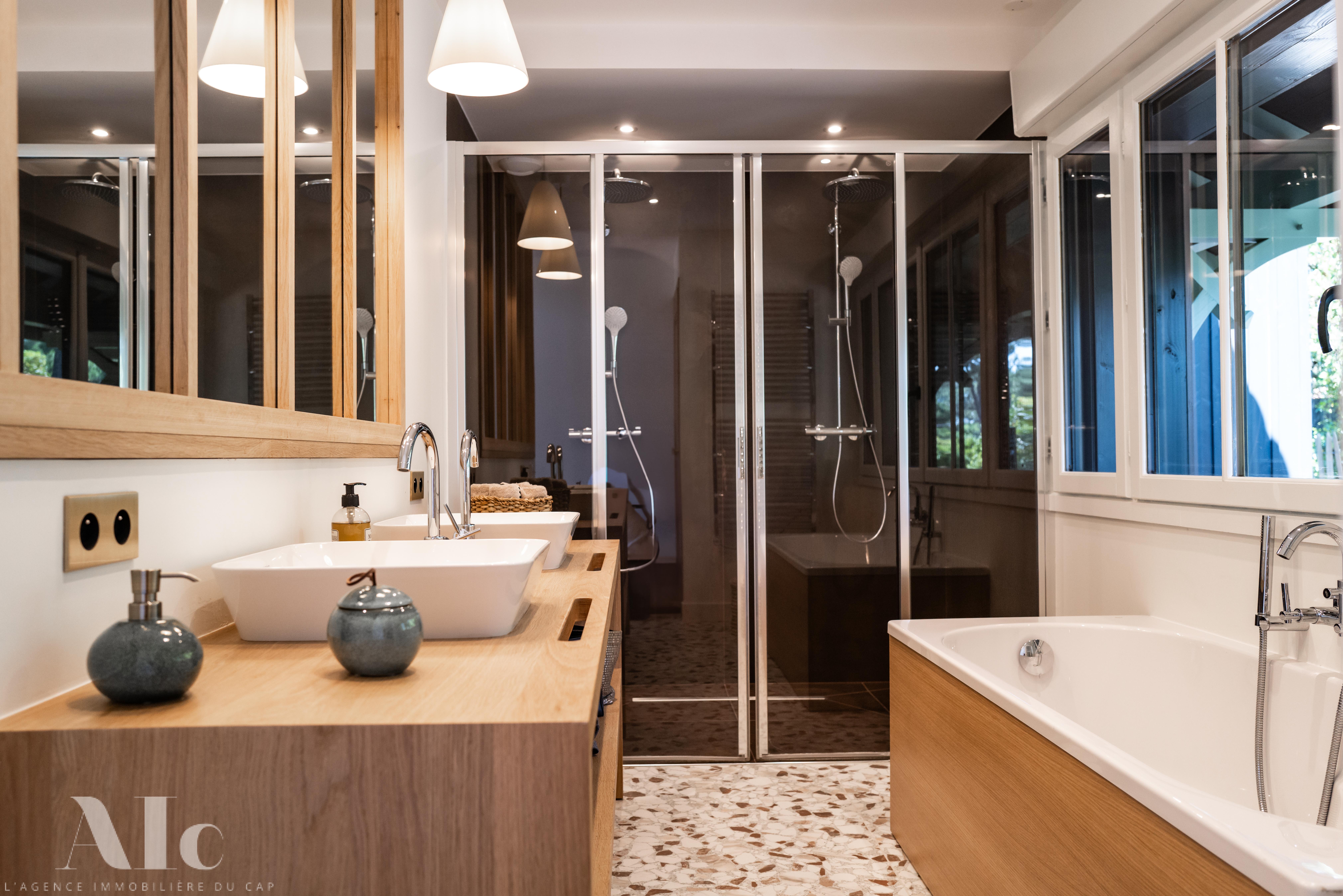 - Suite parentale avec salle de bains complète avec double douche et baignoire, WC séparés, petit coffre,