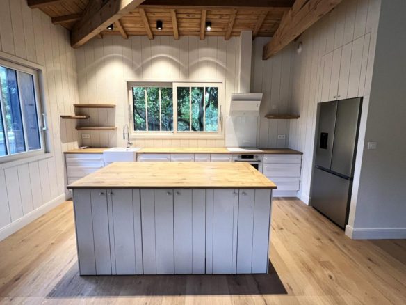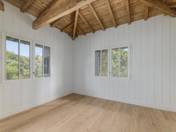 Le style local typique d’une construction tout bois : une atmosphère cosy et feutré, qui fait la part belle à la lumière de la presqu’île.