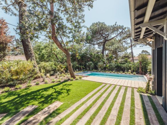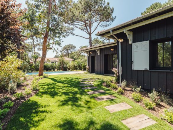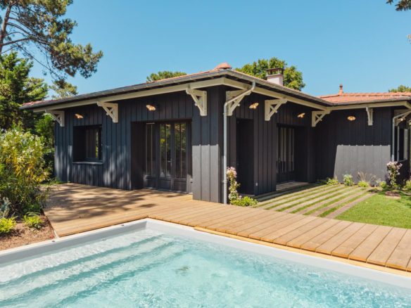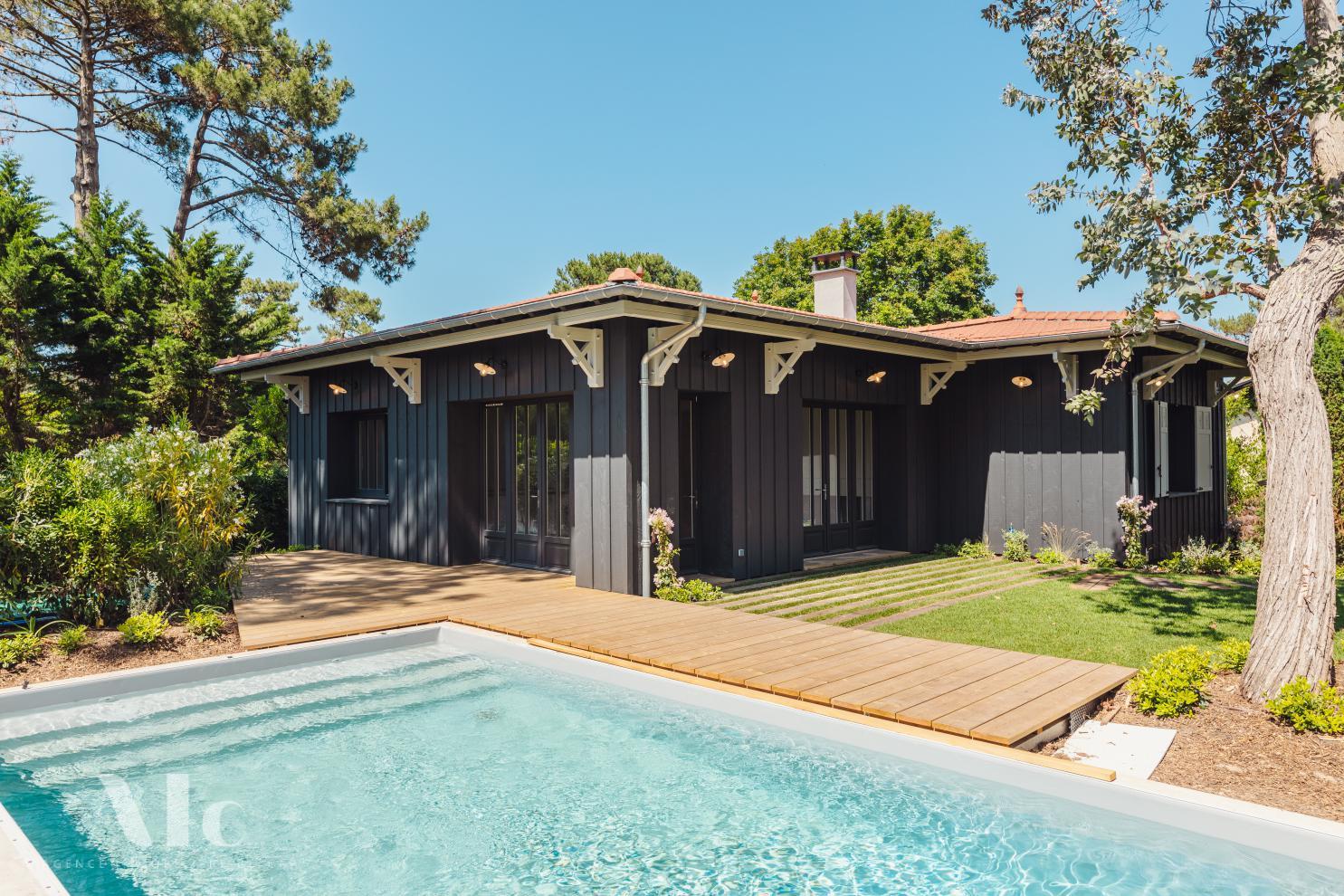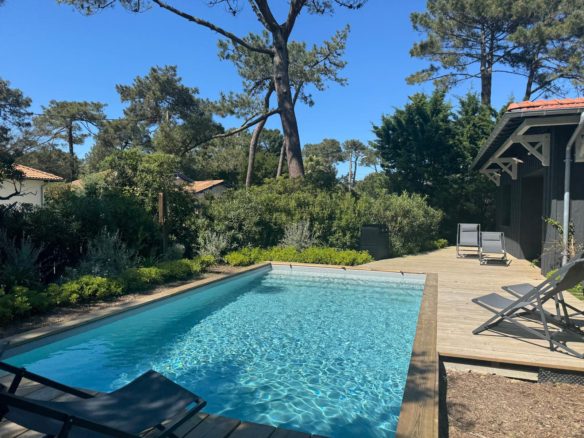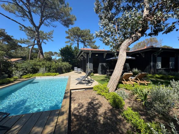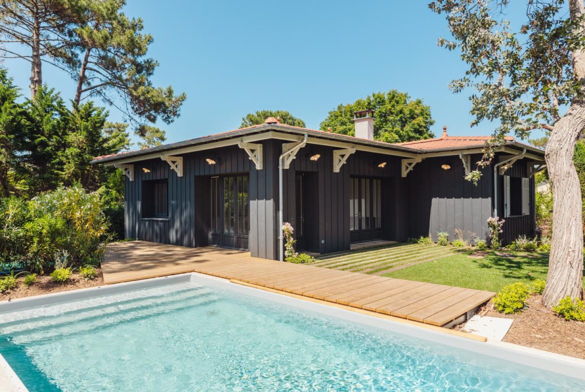 Cette villa bois avec piscine située au cœur du village du Cap Ferret est en vente immédiate
