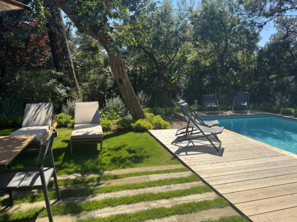 Sur une très confortable parcelle de 1000 m², rare dans ce secteur, un jardin arboré découvre une rafraîchissante piscine au sel et sa terrasse.