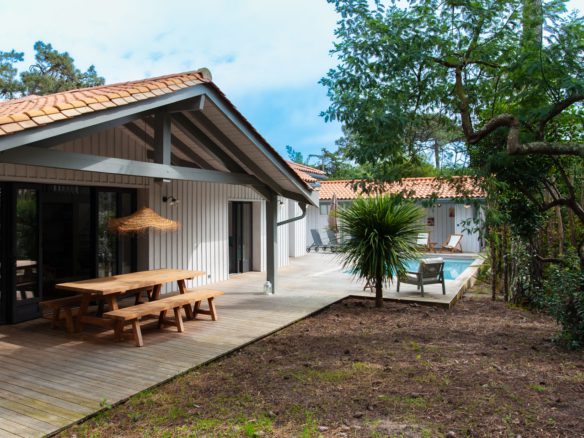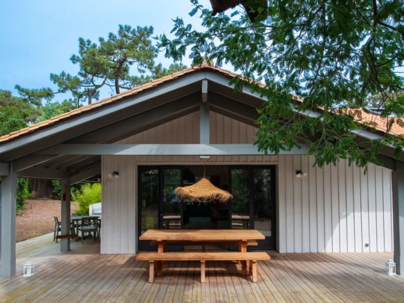 Au cœur du village du Cap Ferret, cette jolie villa bois est proposée en location de vacances juillet et août