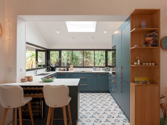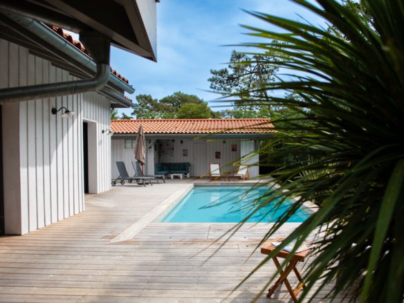 Préservée par un jardin clos, une belle piscine chauffée prolonge les espaces de vie extérieurs. La cuisine, superbement équipée, ouvre astucieusement son bar vers le salon de jardin.