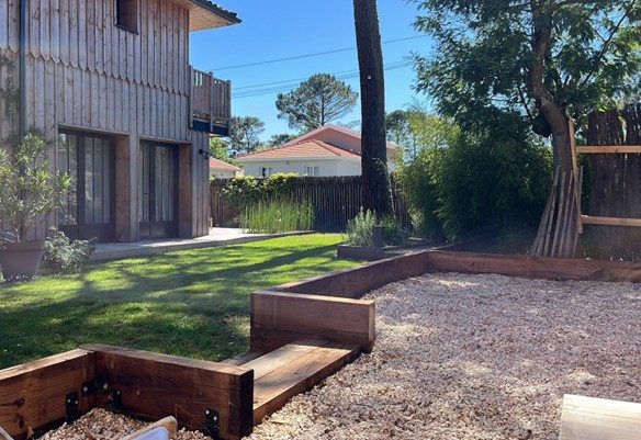 Au coeur du village de Petit Piquey, à deux pas, charmante villa bois sur un terrain clos de 560 m².
