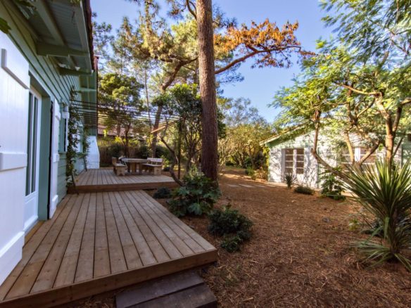 A la pointe du Cap Ferret, dans le secteur très prisé des 44h, cette charmante villa rénovée avec soin se situe au cœur d’un terrain arboré de 650 m².