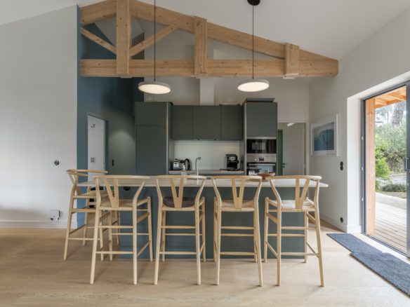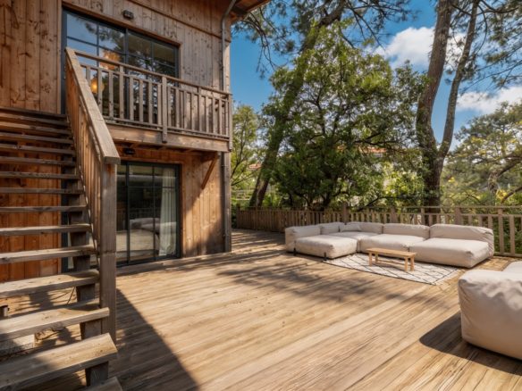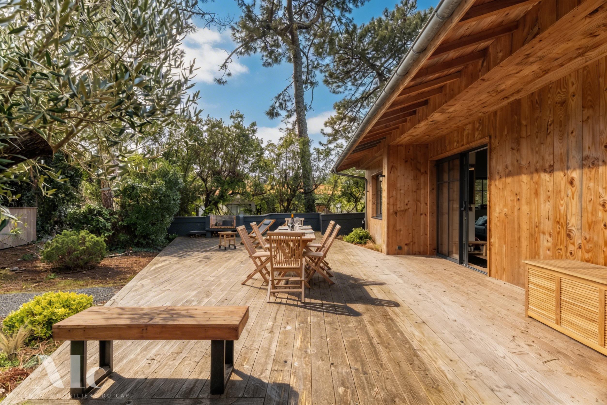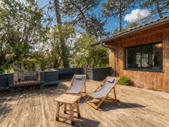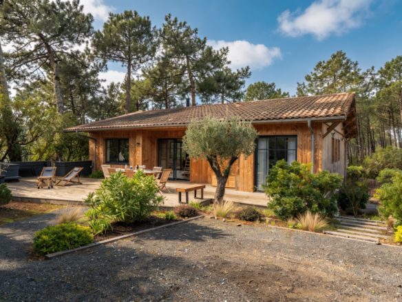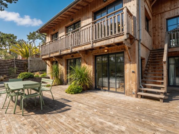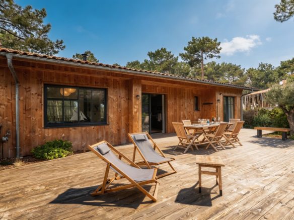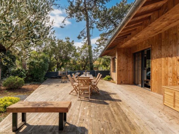 A La Vigne, cette superbe villa tout bois typique de la Presqu’île du Cap Ferret est un véritable appel à la relaxation et à l’évasion.