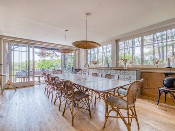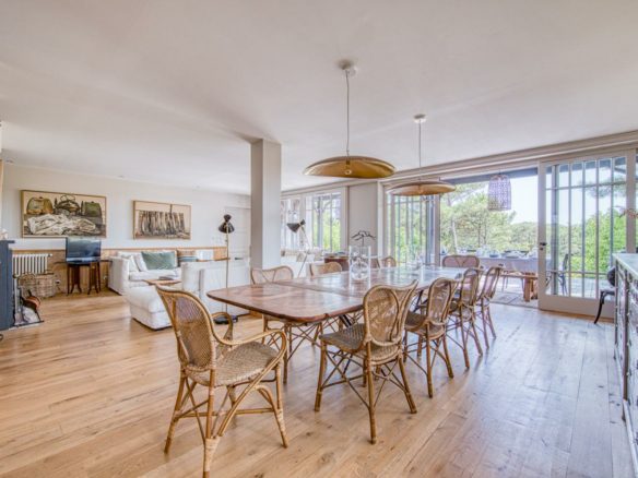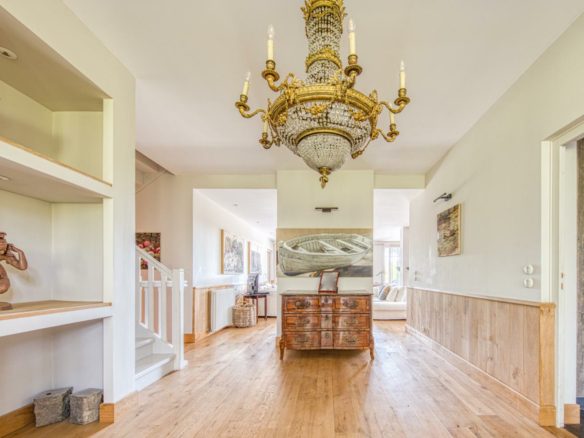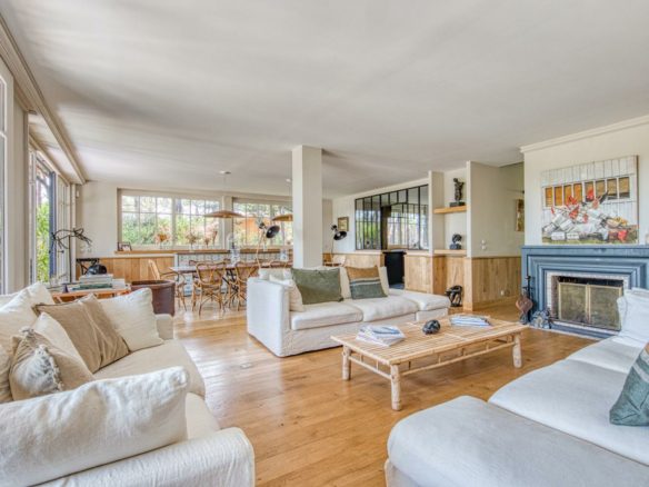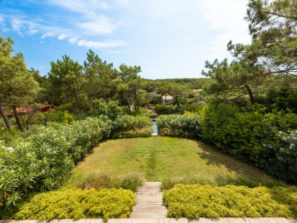 La parcelle offre l’espace et le cadre arboré nécessaire à l’intimité recherchée au cœur de la saison estivale. Une belle piscine chauffée est élégamment intégrée dans le paysage. Les grands volumes déployés dans chaque pièce de vie offrent respiration et sensation d’harmonie.