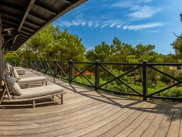 Emplacement exceptionnel pour cette superbe villa d’architecte de 300 m², de type ferretcapienne, dégageant de très belles vues aérées. Elle se situe dans une rue centrale et au calme au Cap Ferret.