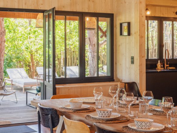 De grands volumes pour les espaces de partage, une décoration et des aménagements soignés pour un séjour inoubliable au Cap Ferret