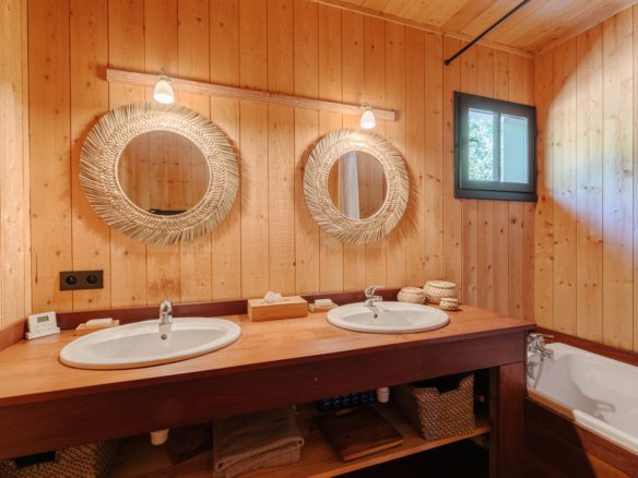 Avec 6 chambres aménageables en occupation de couple ou chambres d’enfants, cette chaleureuse villa tout bois offre une rare capacité d’accueil. Par ailleurs, les prestations de confort et d’équipement sont de niveau particulièrement élevées et la décoration est très soignée.