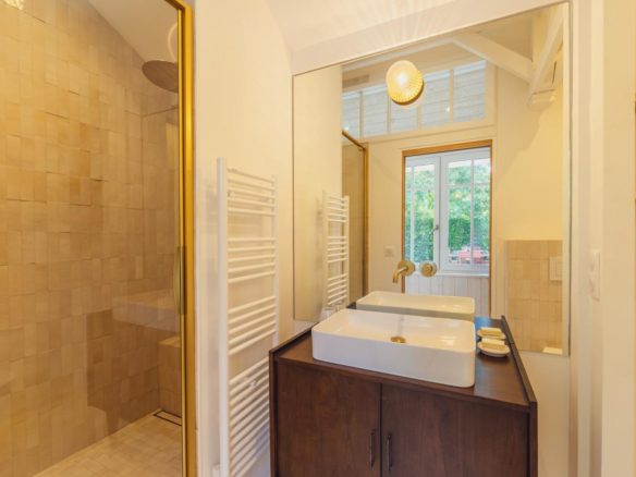 - Suite parentale avec lit 160 cm orientée plein sud, avec salle d’eau et WC