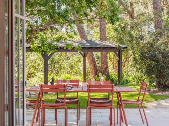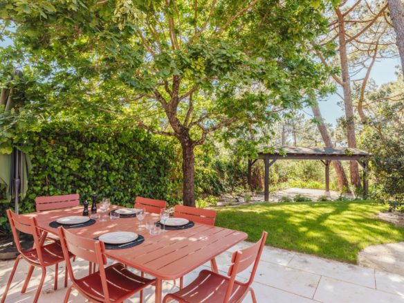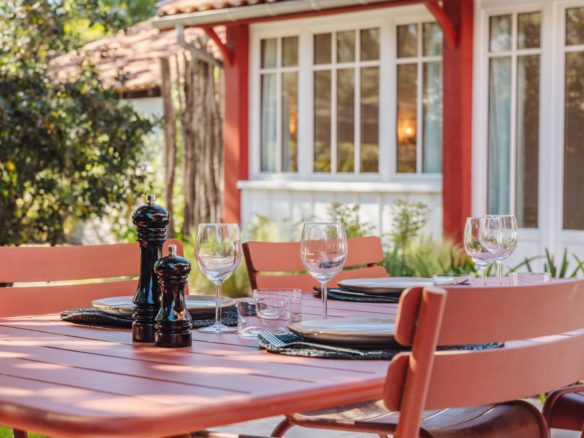 En extérieur, les terrasses bien exposées dans un jardin clos offrent toute l’intimité nécessaire au repos.
