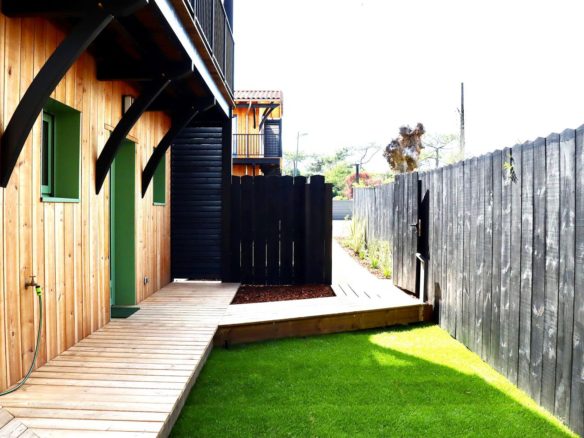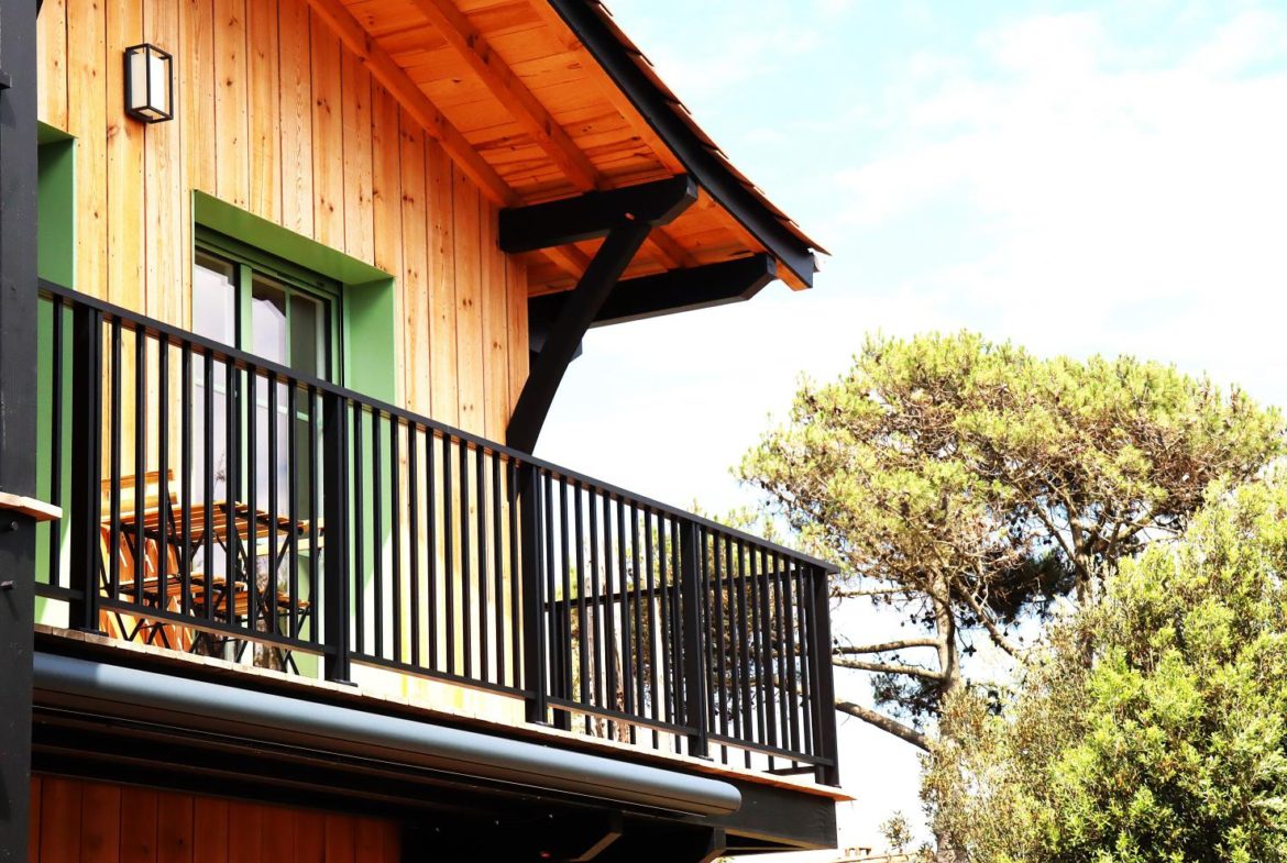 Côté océan au Cap Ferret, cette ravissante villa bois mitoyenne se situe sur un terrain clos à proximité de la plage de l’Horizon.