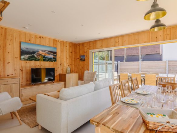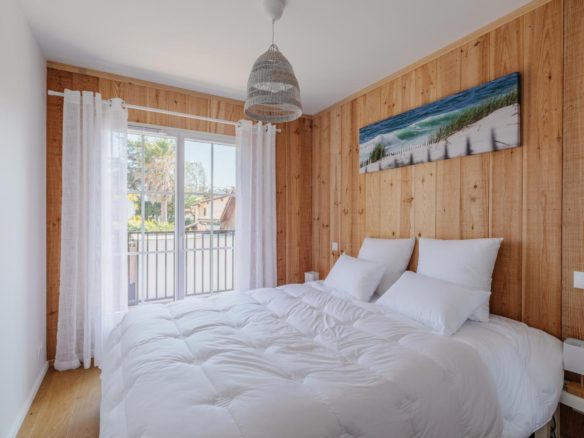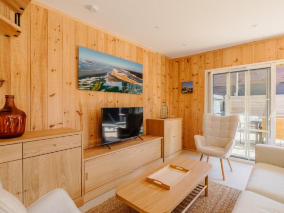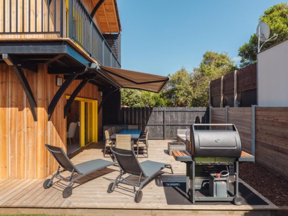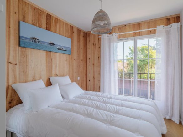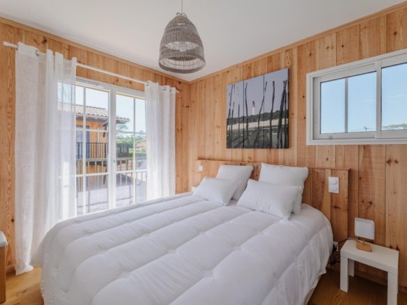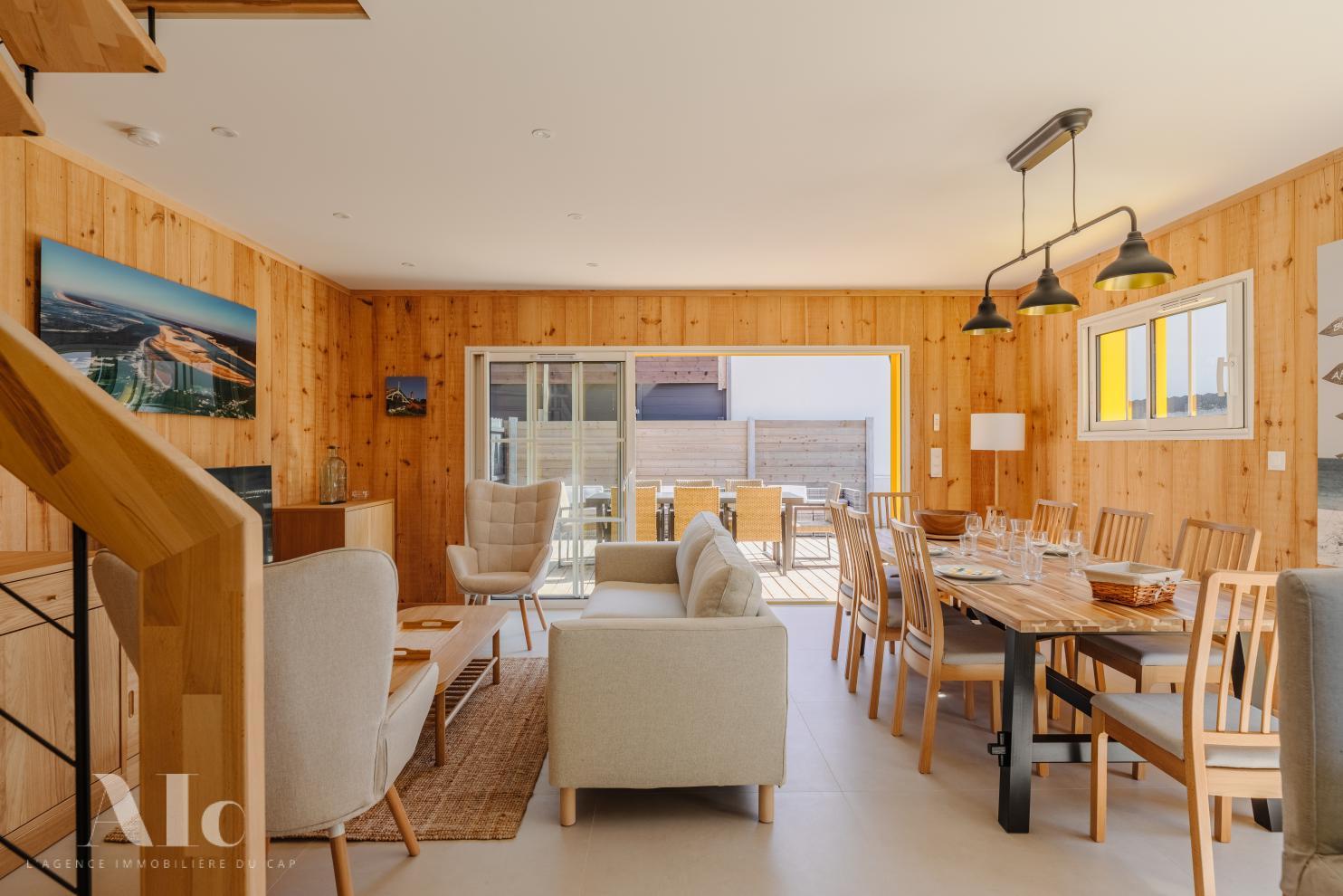 Côté océan au Cap Ferret, cette ravissante villa bois mitoyenne se situe sur un terrain clos à proximité de la plage de l’Horizon.