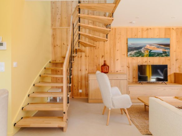 Meublé et décoré avec soin, ce lieu vous séduira immédiatement. Une ambiance lumineuse avec de beaux ouvrants invitant la lumière, des couleurs et matières chaudes et enveloppantes.