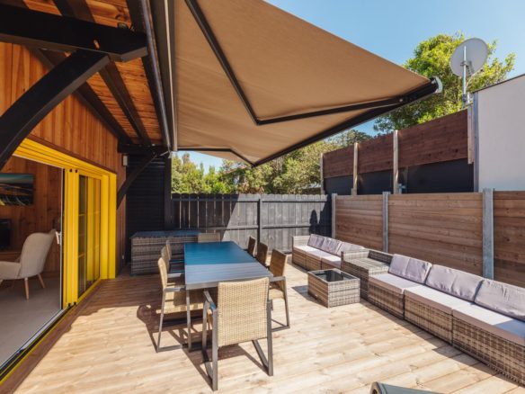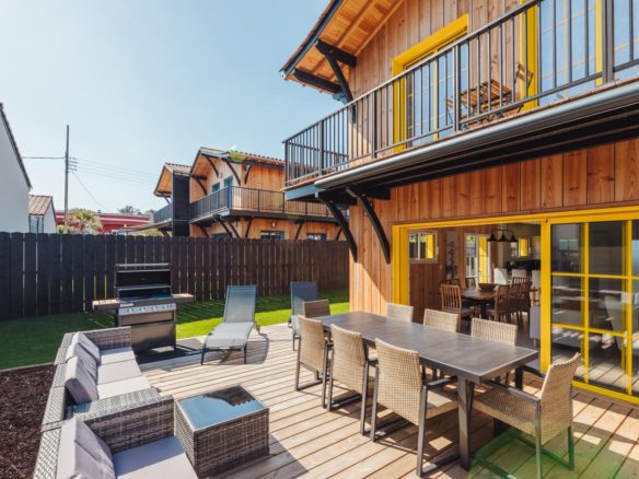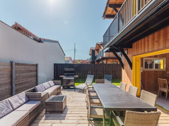 Une terrasse totalement aménagée prolonge la pièce de vie… et vos soirées d’été. A l’étage, un balcon filant offre la possibilité d’espaces plus intimes.