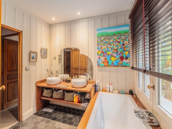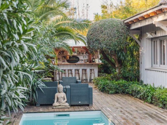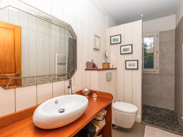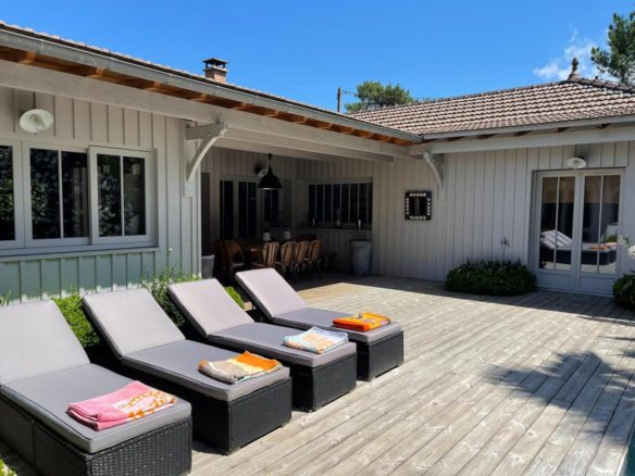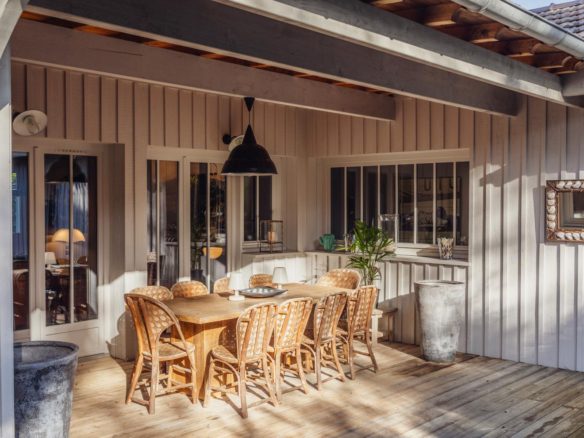 In the heart of the Mimbeau area, this elegant villa in Cap Ferret fishermen’s hut style is located in a preserved environment of an enclosed garden