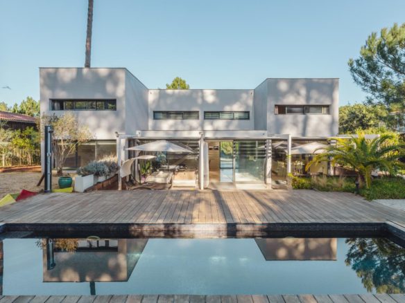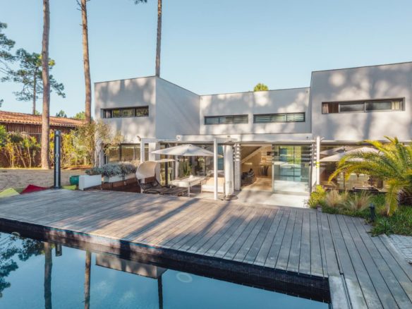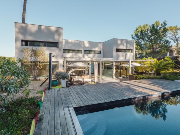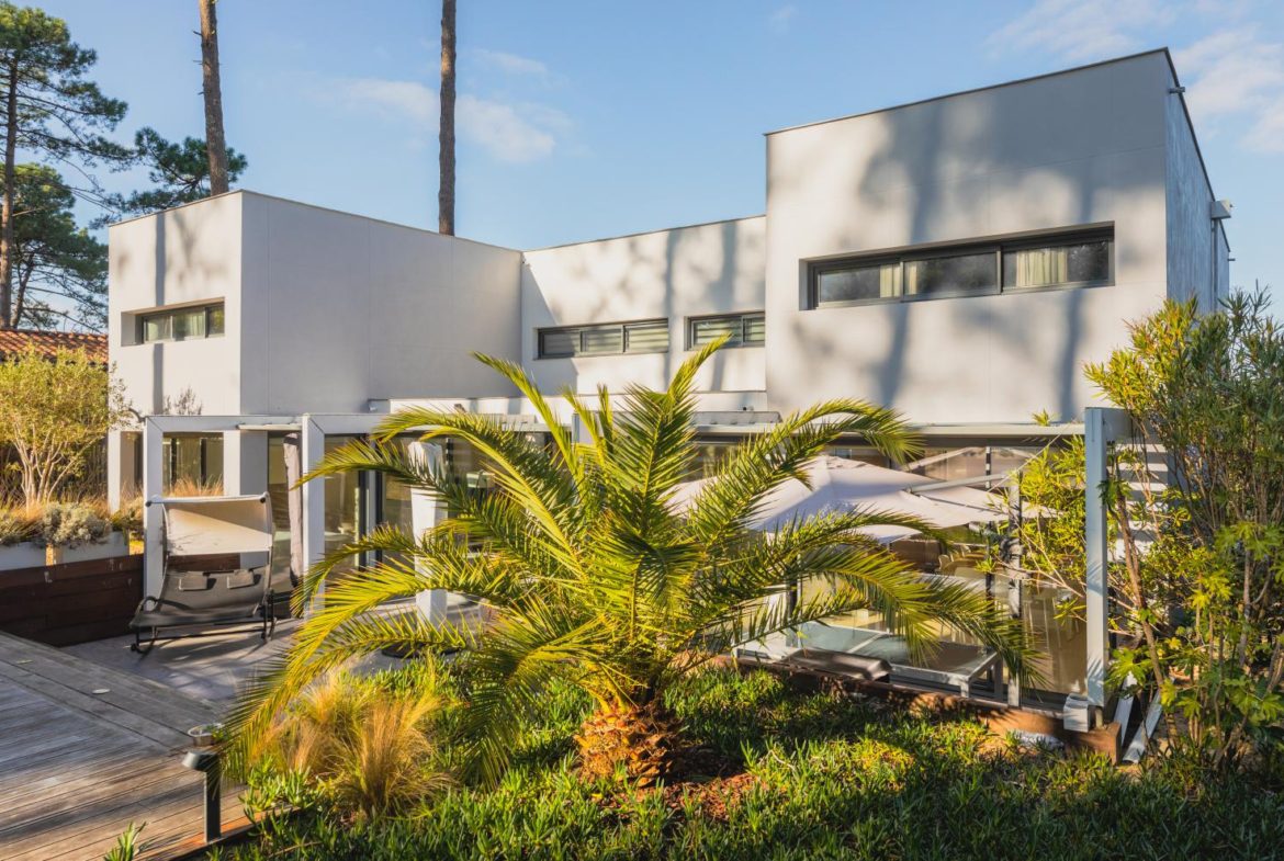 This superb architect-designed villa in the village of Le Canon on the Cap Ferret peninsula is available for immediate sale