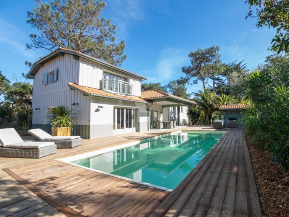 This large villa with swimming pool in the heart of Cap Ferret is available for holiday rental.