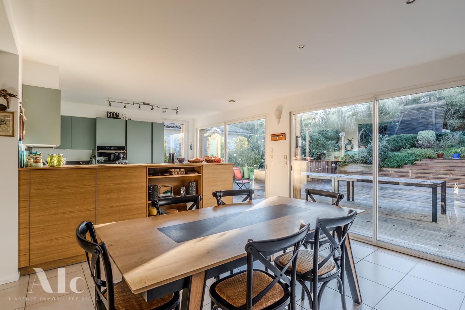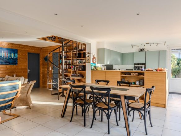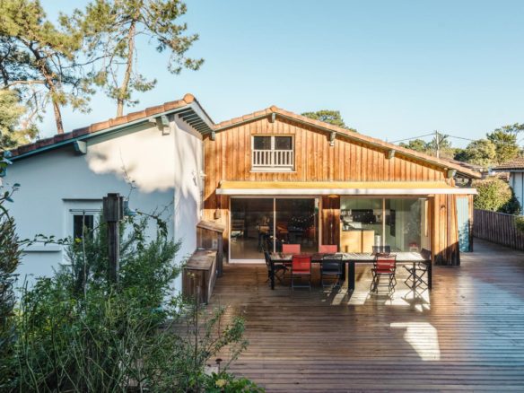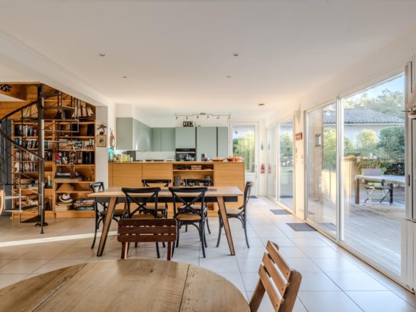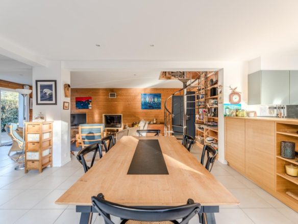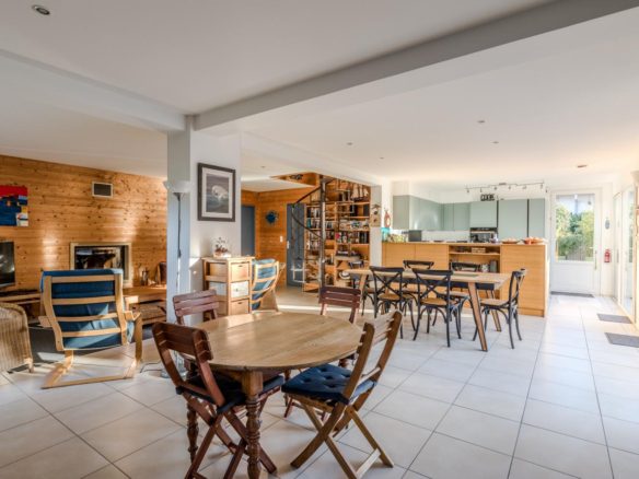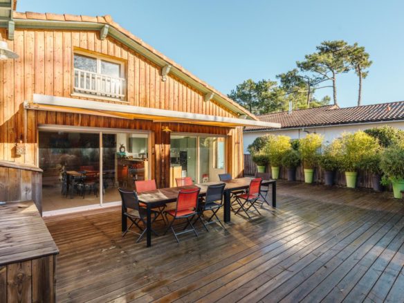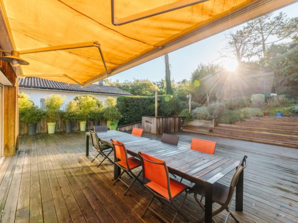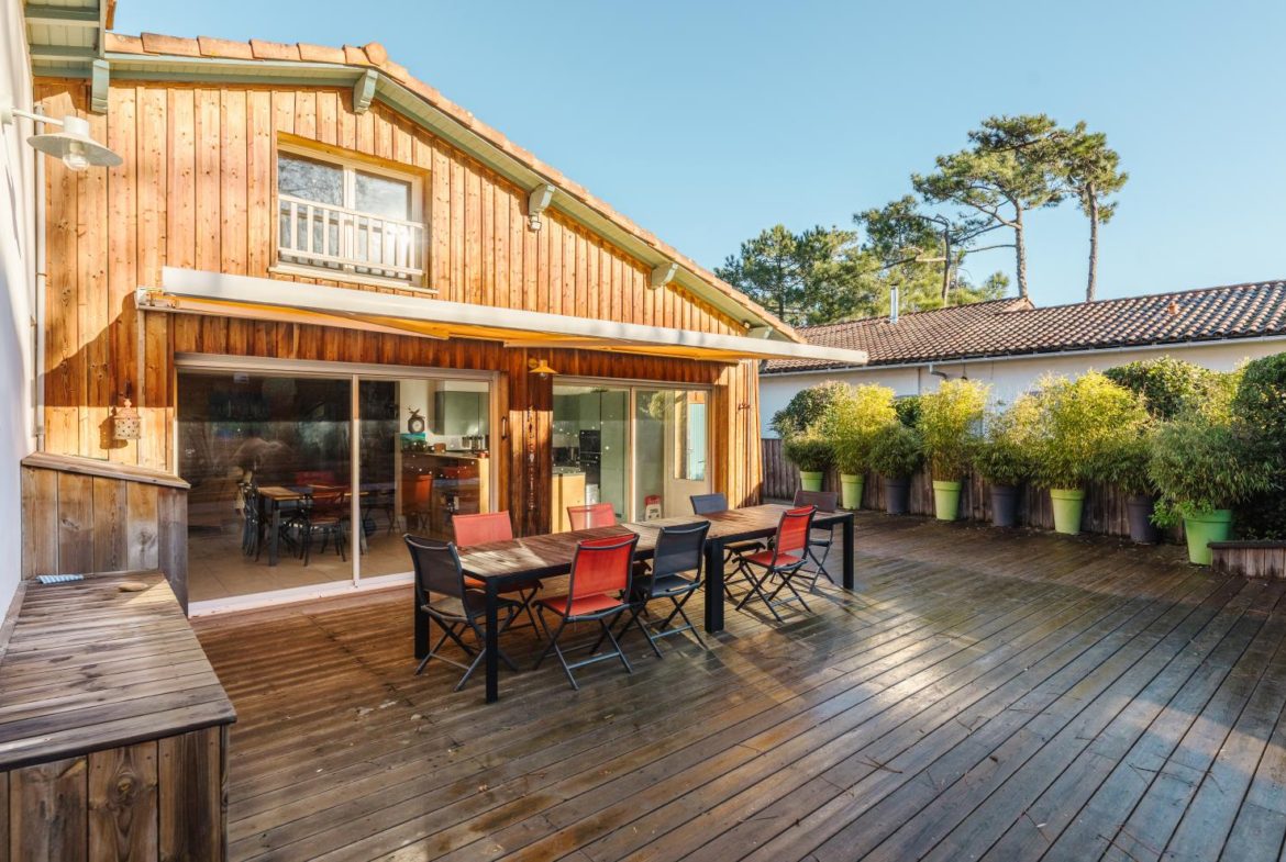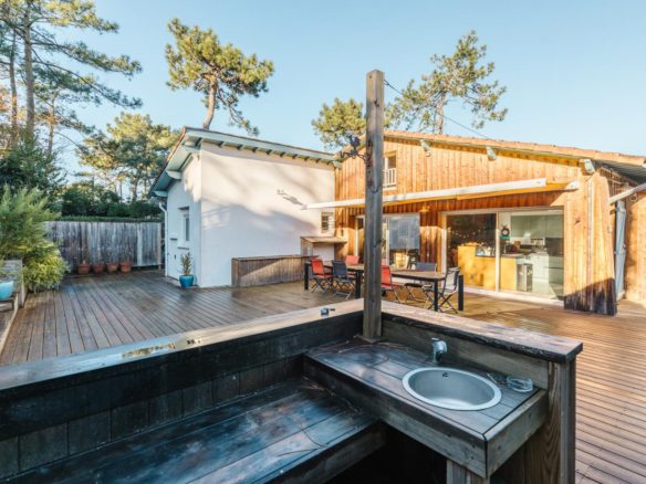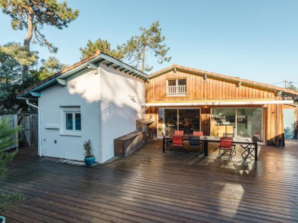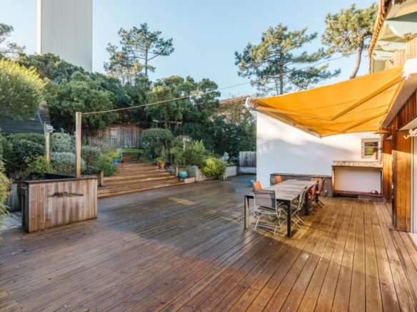 In the heart of the village of Cap Ferret, this five-bedroom villa is located just a stone’s throw from the beach and near the market.