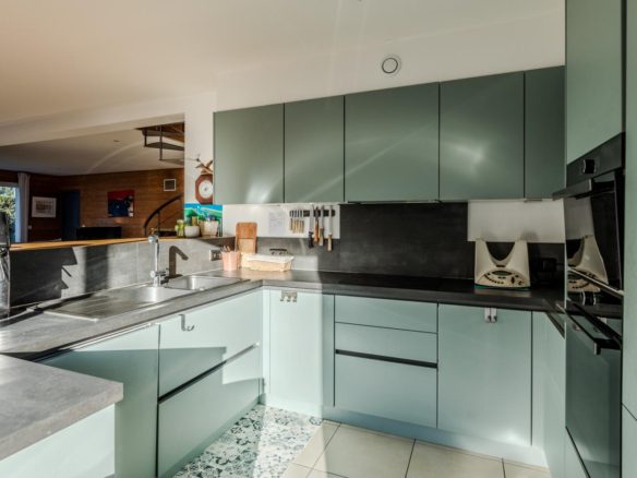 The spacious and bright villa is in perfect condition. A large terrace extends the usable space, opening up to an outdoor living area.