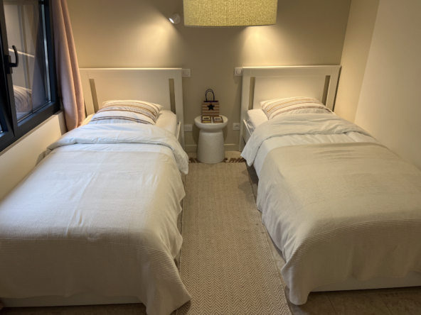 This property offers an easy-going lifestyle thanks to its tasteful decoration, carefully chosen materials, and intelligently designed interior and exterior spaces. Special doors open from the kitchen onto an outdoor bar area.