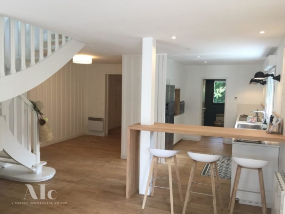 Cap Ferret!… where the lagoon stops and the holidays begin… One of the most popular districts, the tip of Cap Ferret contains everything the peninsula is famous for. A lively village bustling with shops and restaurants, a large daily summer market, a traditional oyster-farming and fishing district, breathtaking views of the Dune du Pilat and the Atlantic Ocean, both “urban” and “rustic” beaches, with the vast expanses of the ocean waves just a stone’s throw away. The range of real estate properties available is just as varied, from fishing huts to large traditional family villas.More similar properties