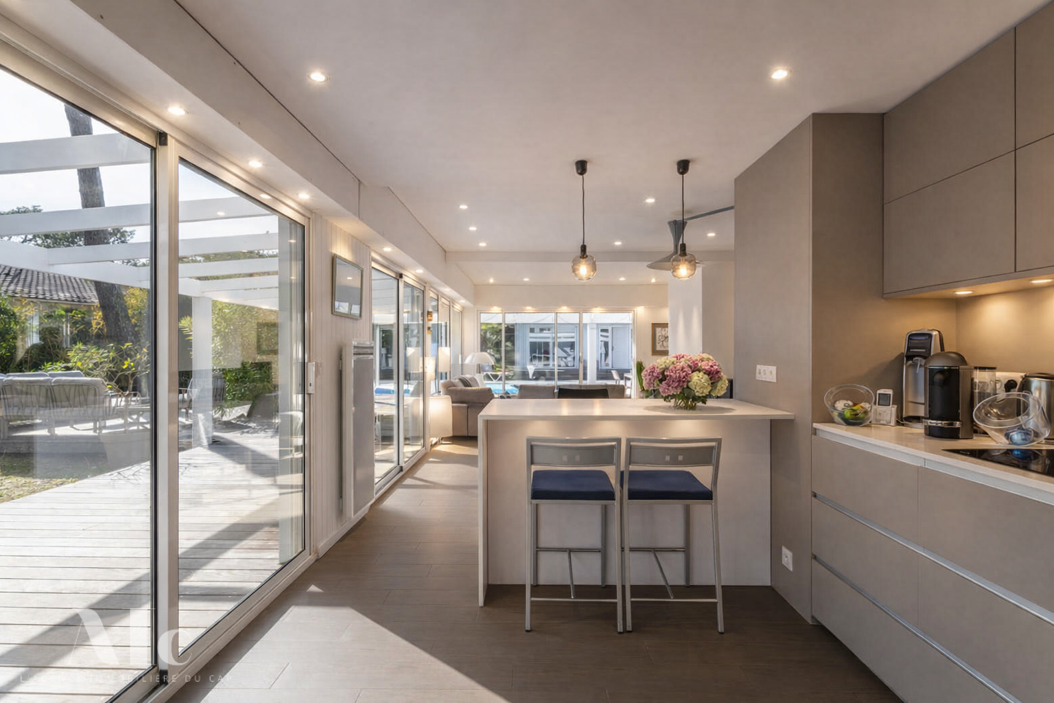 The living areas are particularly well-organised and well-equipped, allowing everyone to live independently. The guest house offers a lovely, fully separate space opening onto a heated saltwater pool