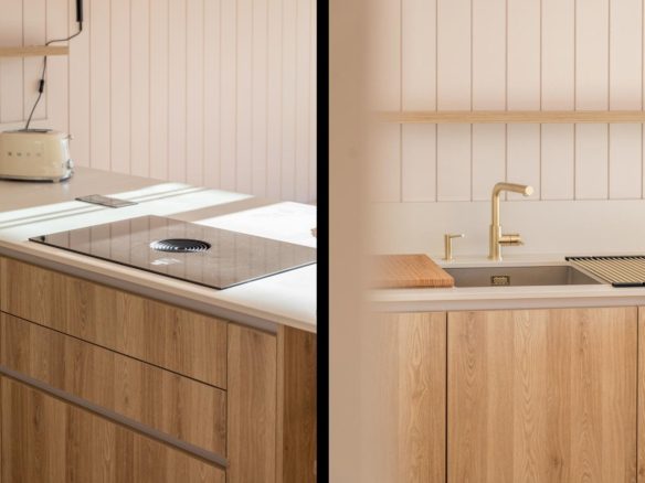 The living area with lounge and open-plan kitchen opens onto a large terrace. The fully-equipped kitchen is highly functional. It blends perfectly into the space and includes an island dining table.