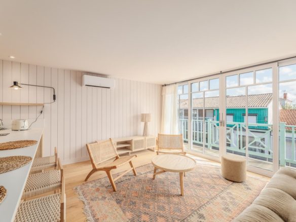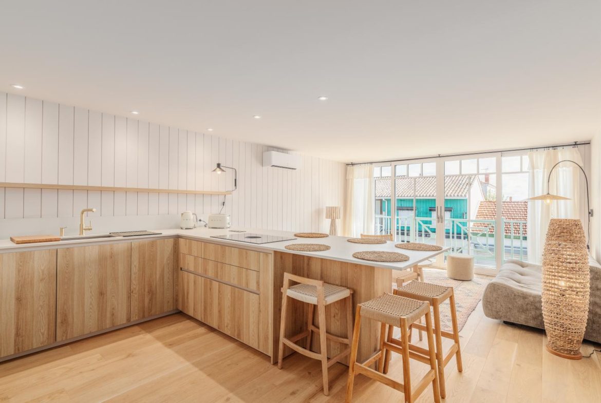 In the heart of the village of Cap Ferret, just a few metres from the bay’s beaches, lies this beautifully renovated duplex apartment.