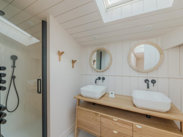 On the upper level, the bedrooms offer the soothing calm that comes with their elevated position. A private terrace overlooking the bay completes this property.