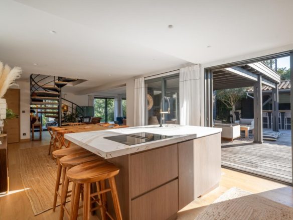 This spacious villa with a swimming pool is available for immediate sale in the village of Cap Ferret.