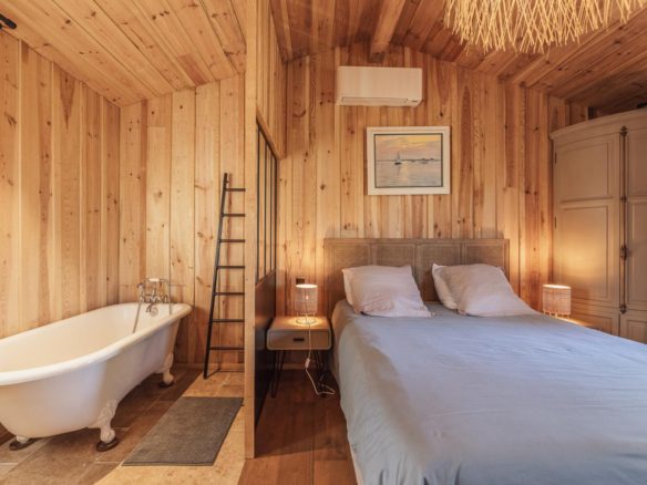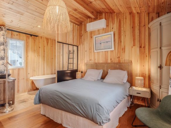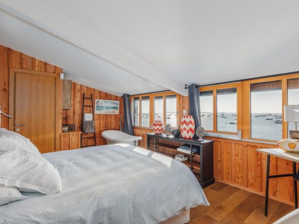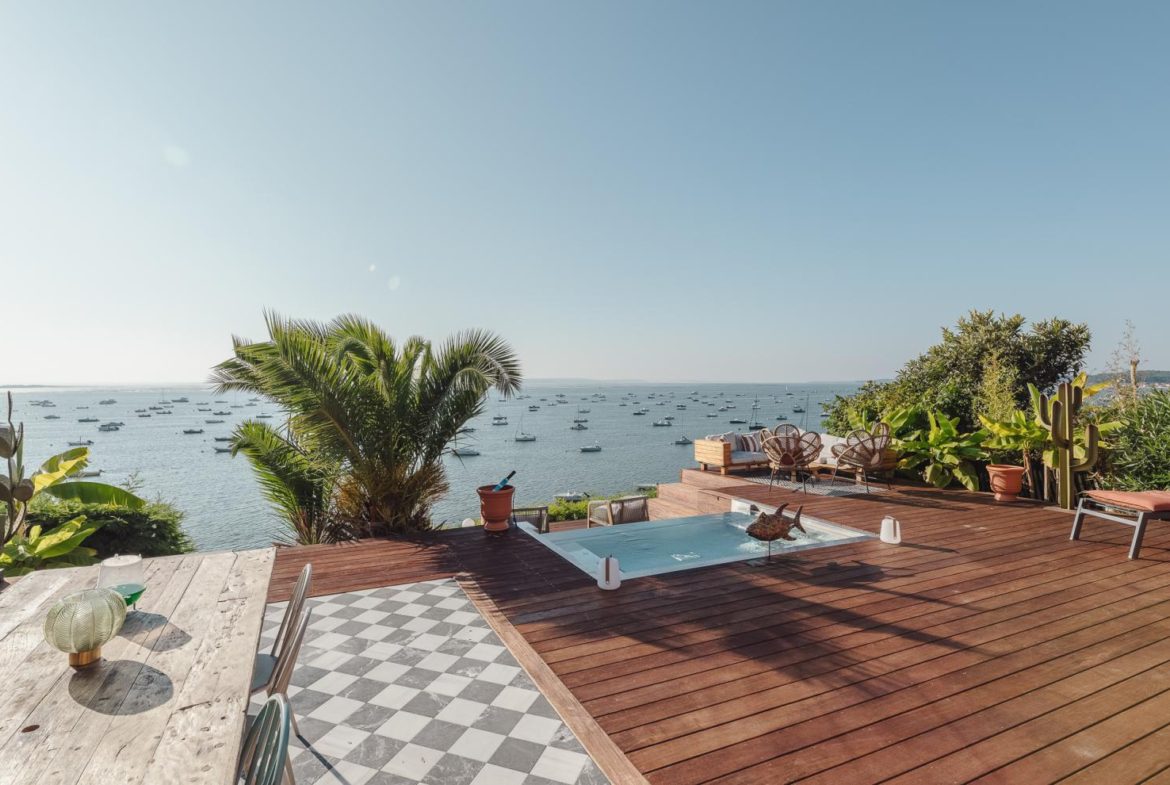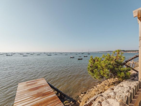This exceptional family villa renovated in the Cap Ferret fisherman’s hut style comes with a waterfront outbuilding and boasts stunning panoramic views.