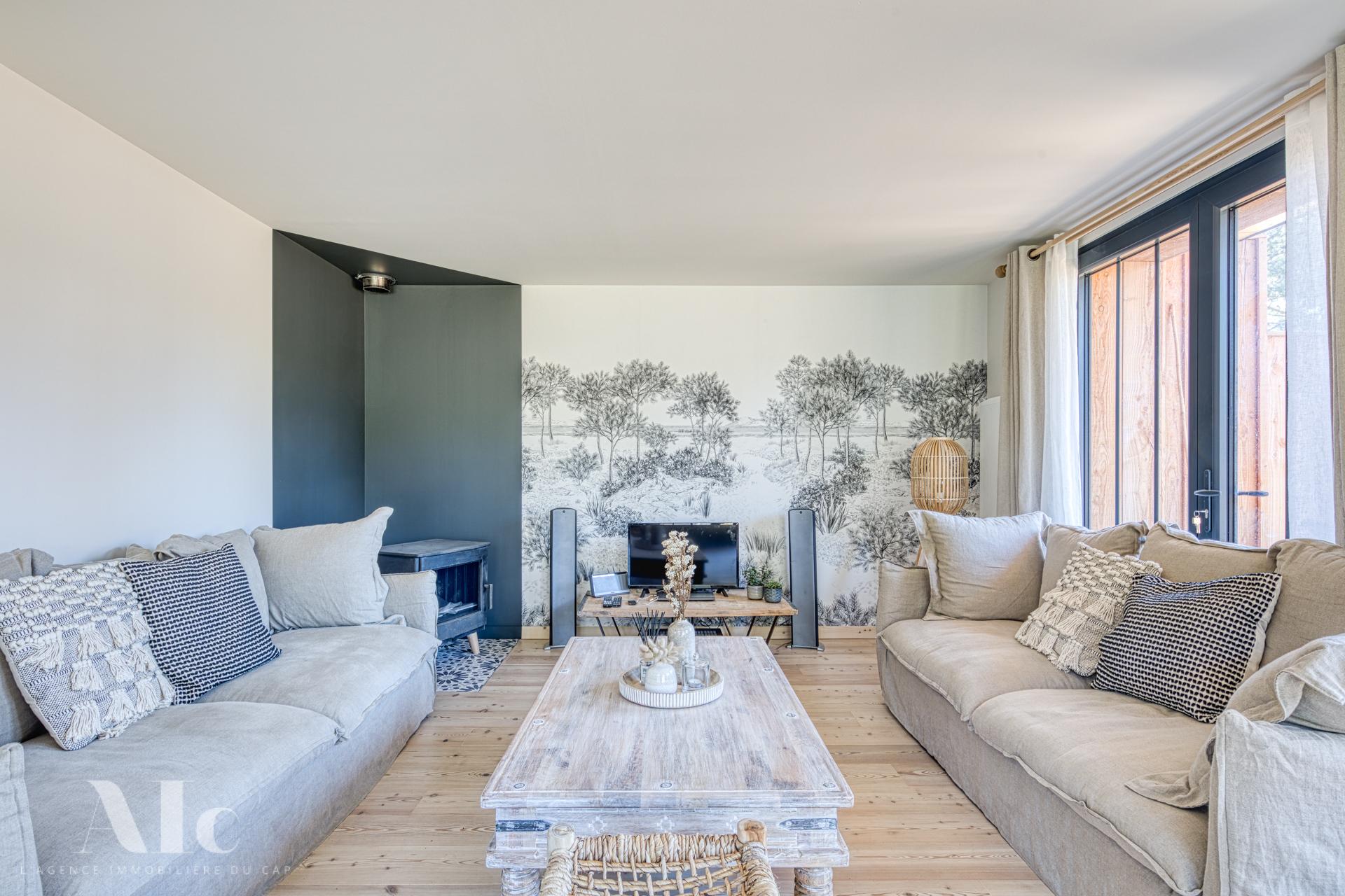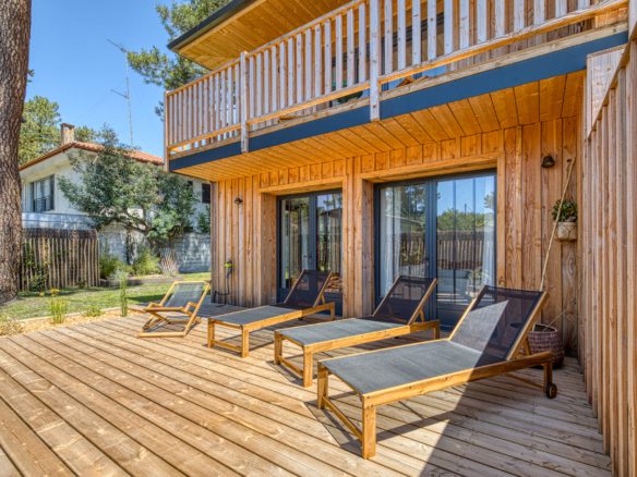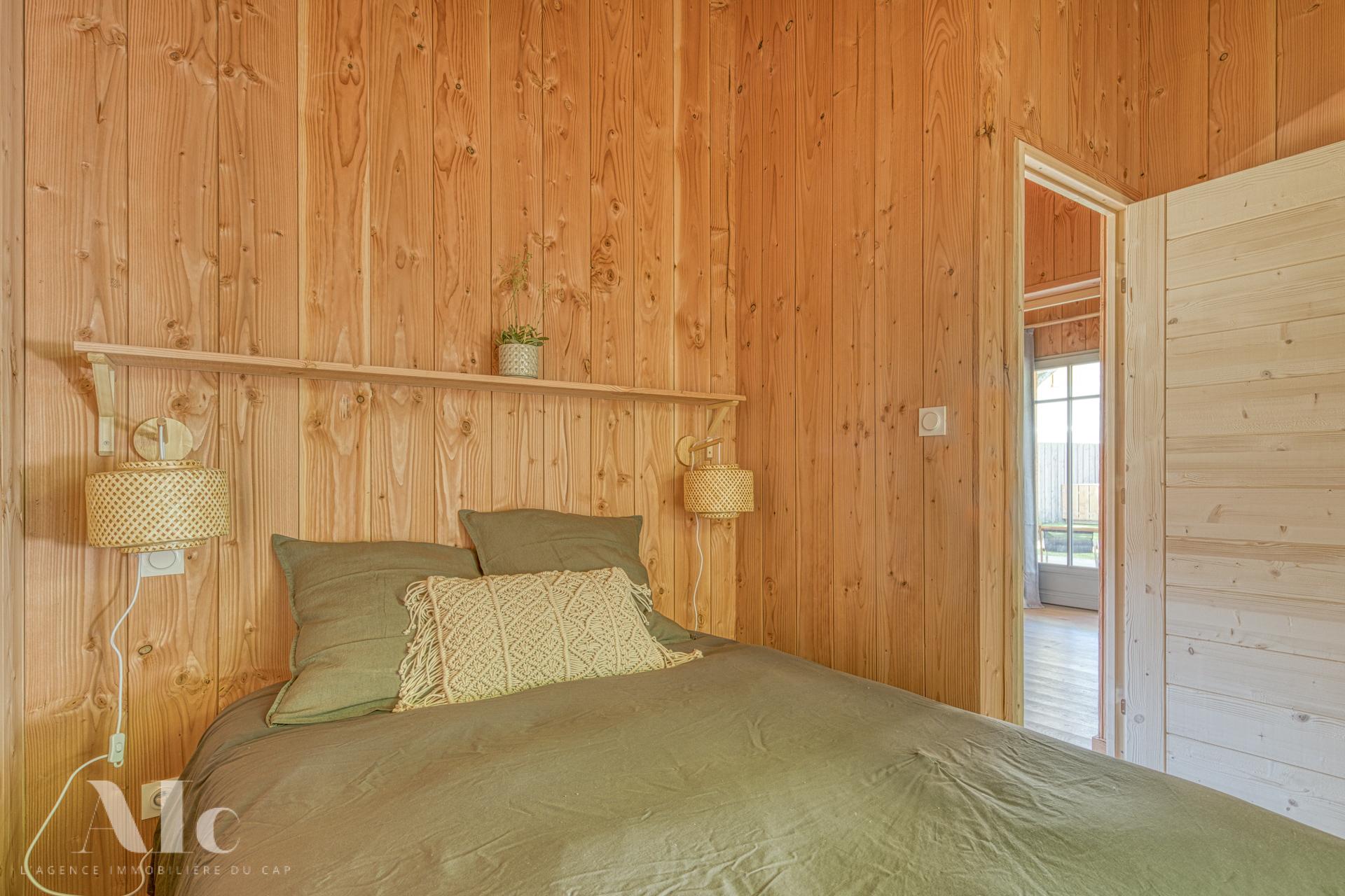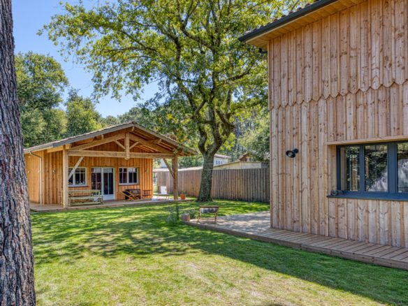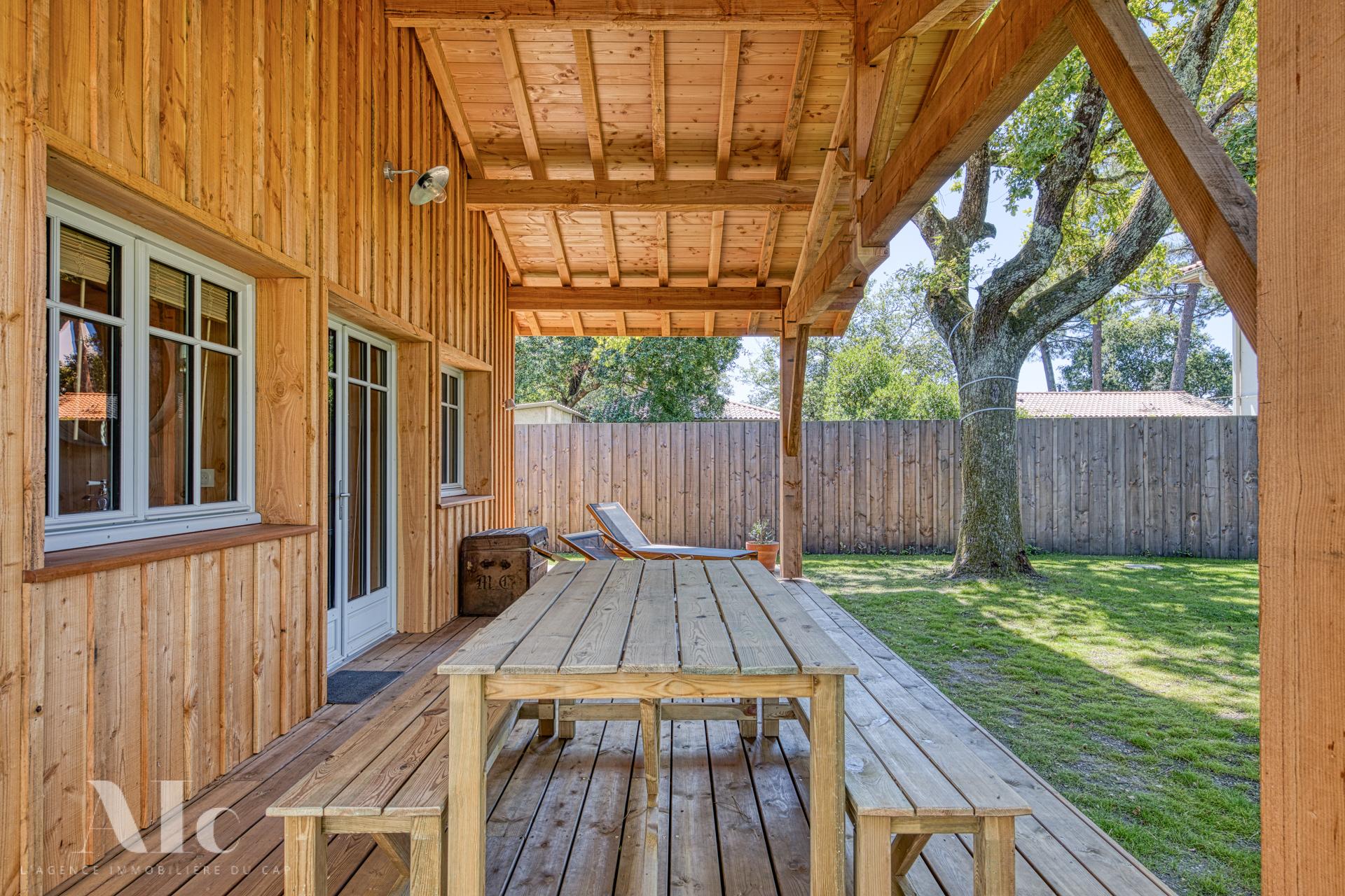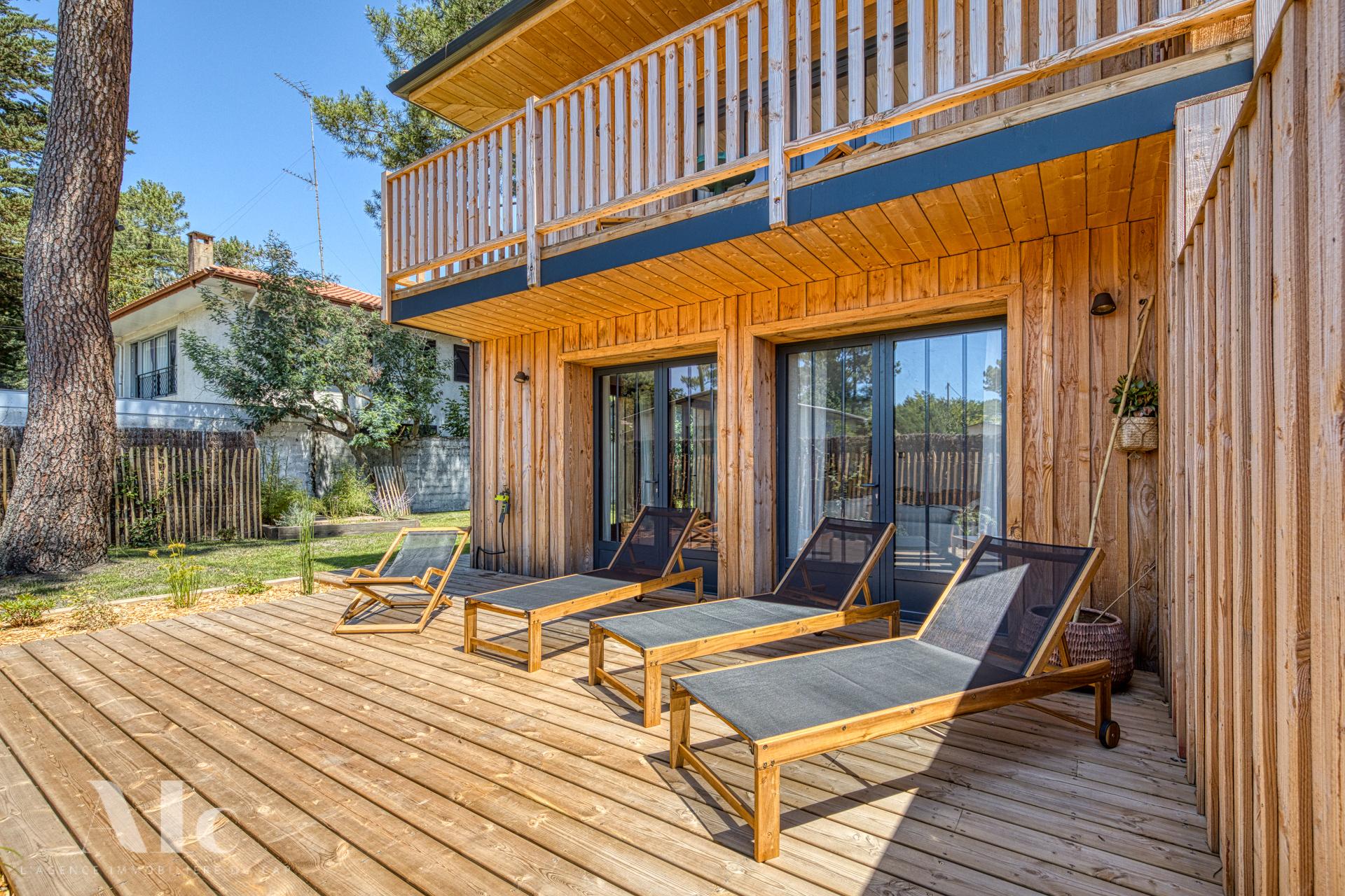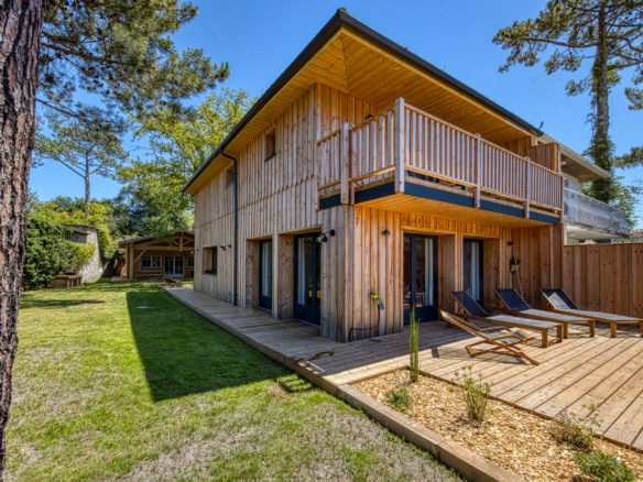 This delightful wooden villa is situated in the heart of the charming village of Petit Piquey on the Cap Ferret peninsula, on enclosed grounds spanning 560 m².